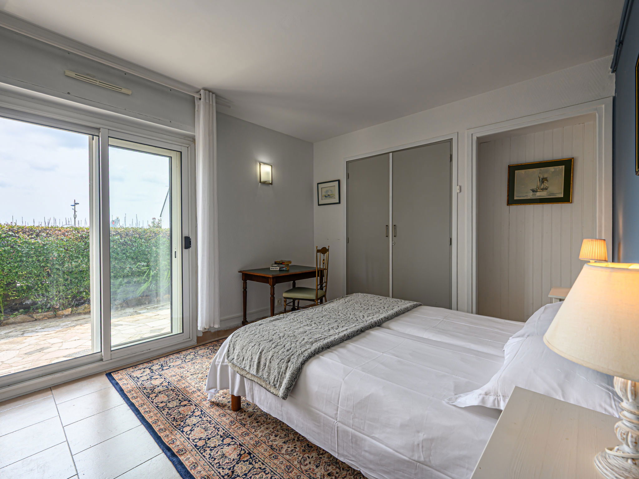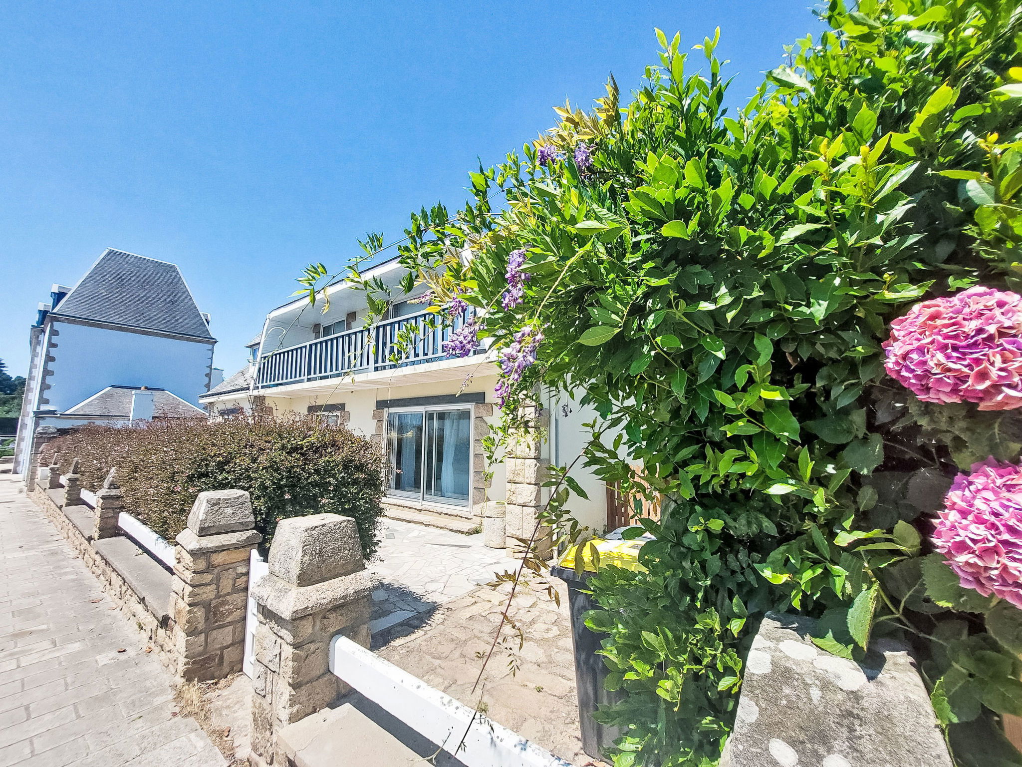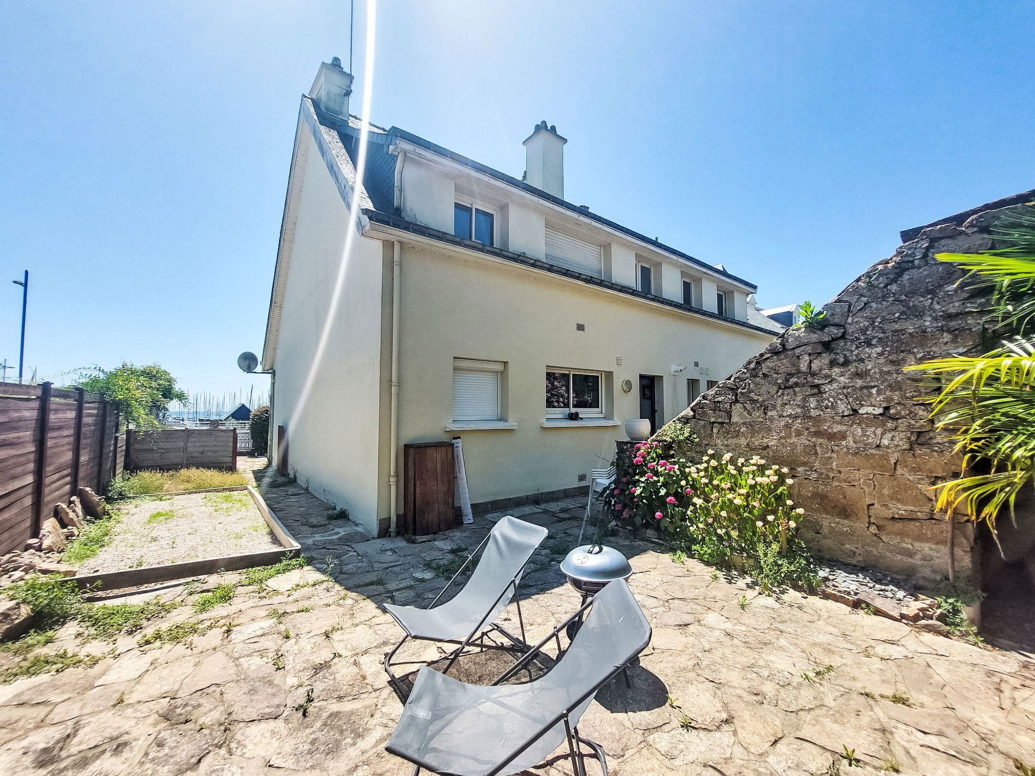2-family house "Les Voiles". In the resort, 750 m from the centre, 50 m from the sea, 2.5 km from the beach. Private: property (fenced). Shop 500 m, grocery, supermarket 750 m, restaurant, bar 100 m, bakery 1 km, bus stop 200 m, sandy beach "Kerbihan" 2.5 km, thermal baths "Thalazur Carnac" 6000 km. Sports harbour 750 m, golf course (18 hole) 15 km, surf school 11 km, sailing school 1 km. Nearby attractions: Les Alignements de Carnac 5 km, Le Port de la Trinité-sur-mer 750 m, Presqu'île de Quiberon 15 km, Auray & Saint-Goustan 15 km, Vannes 25 km.