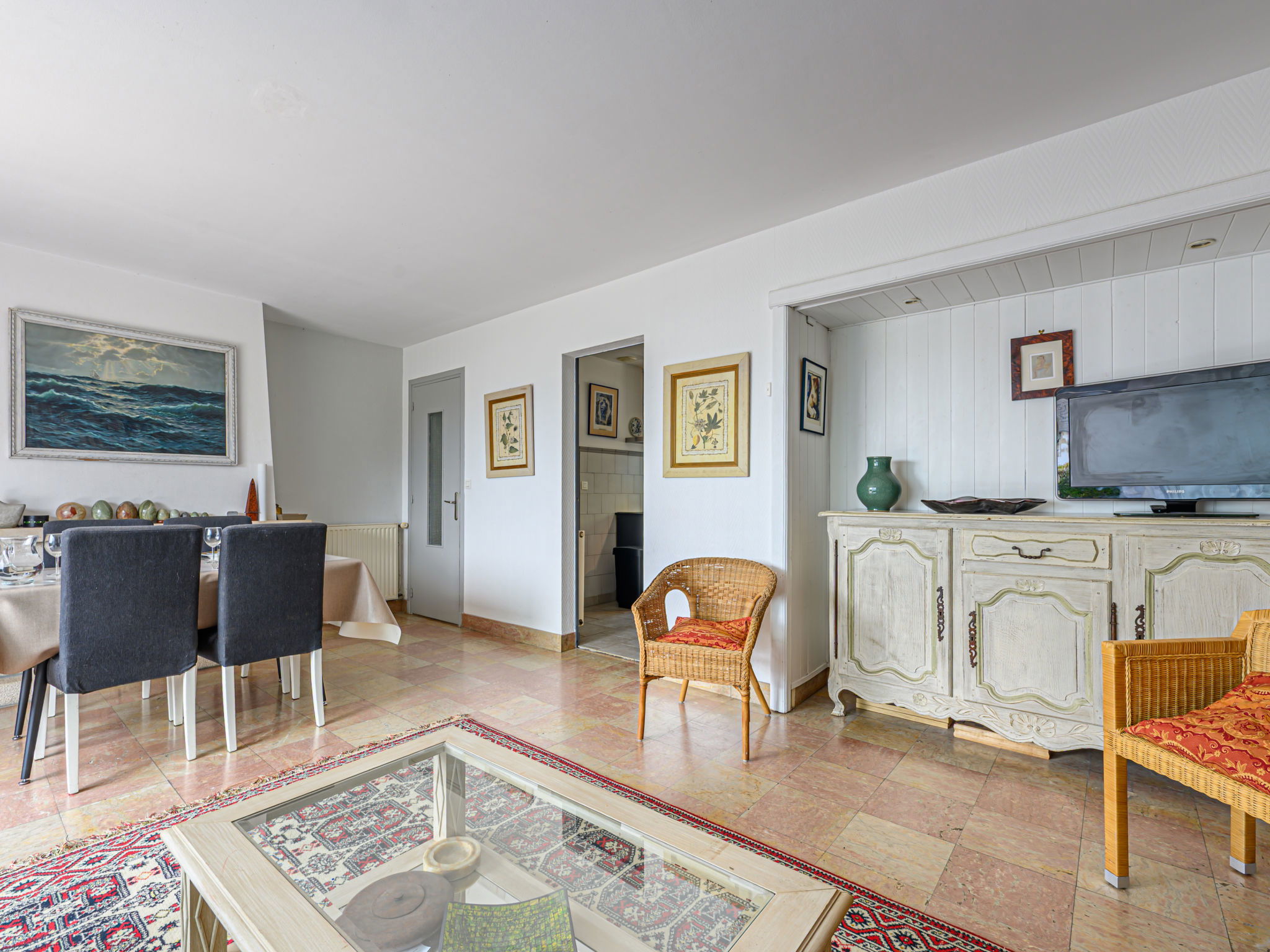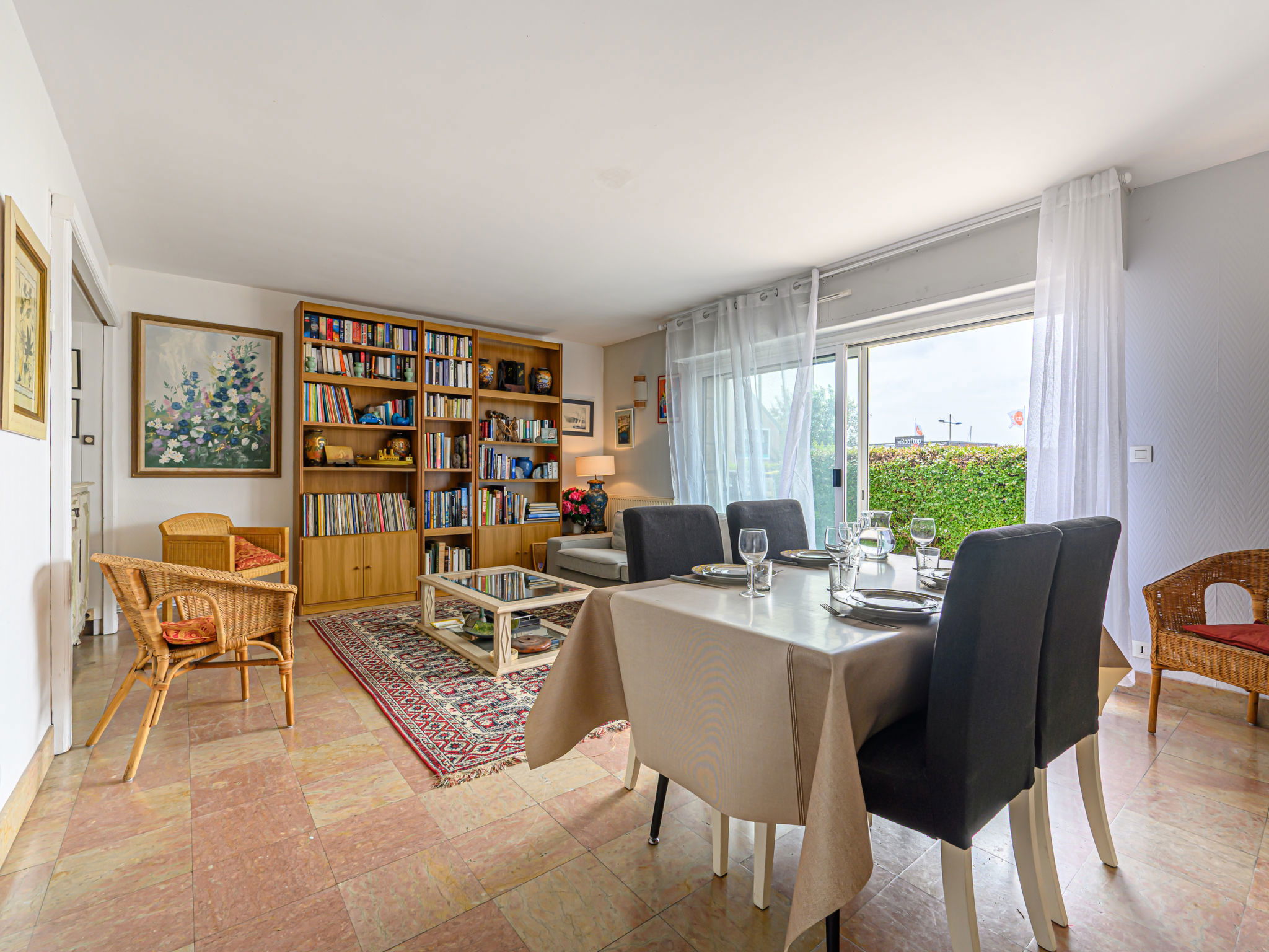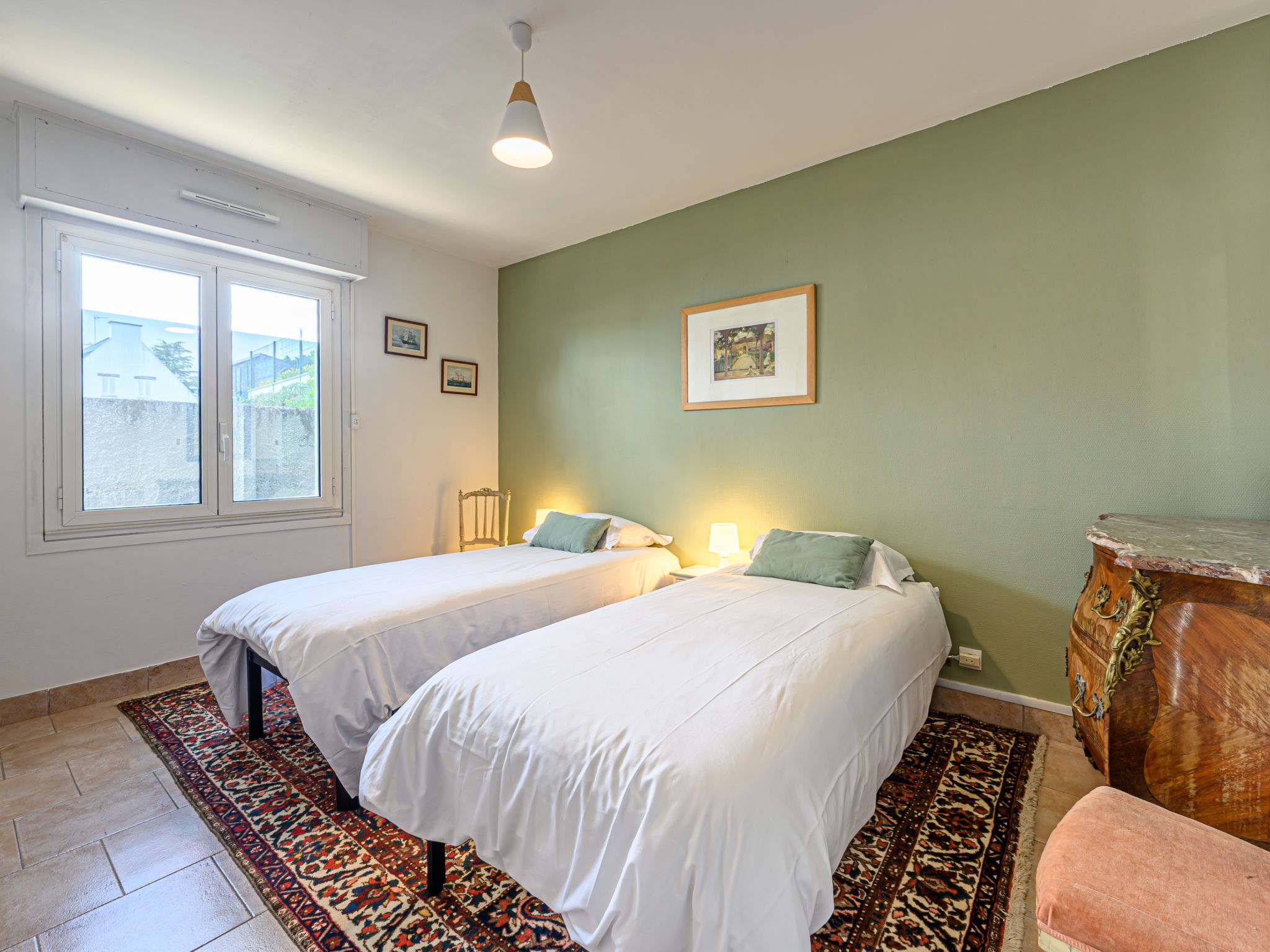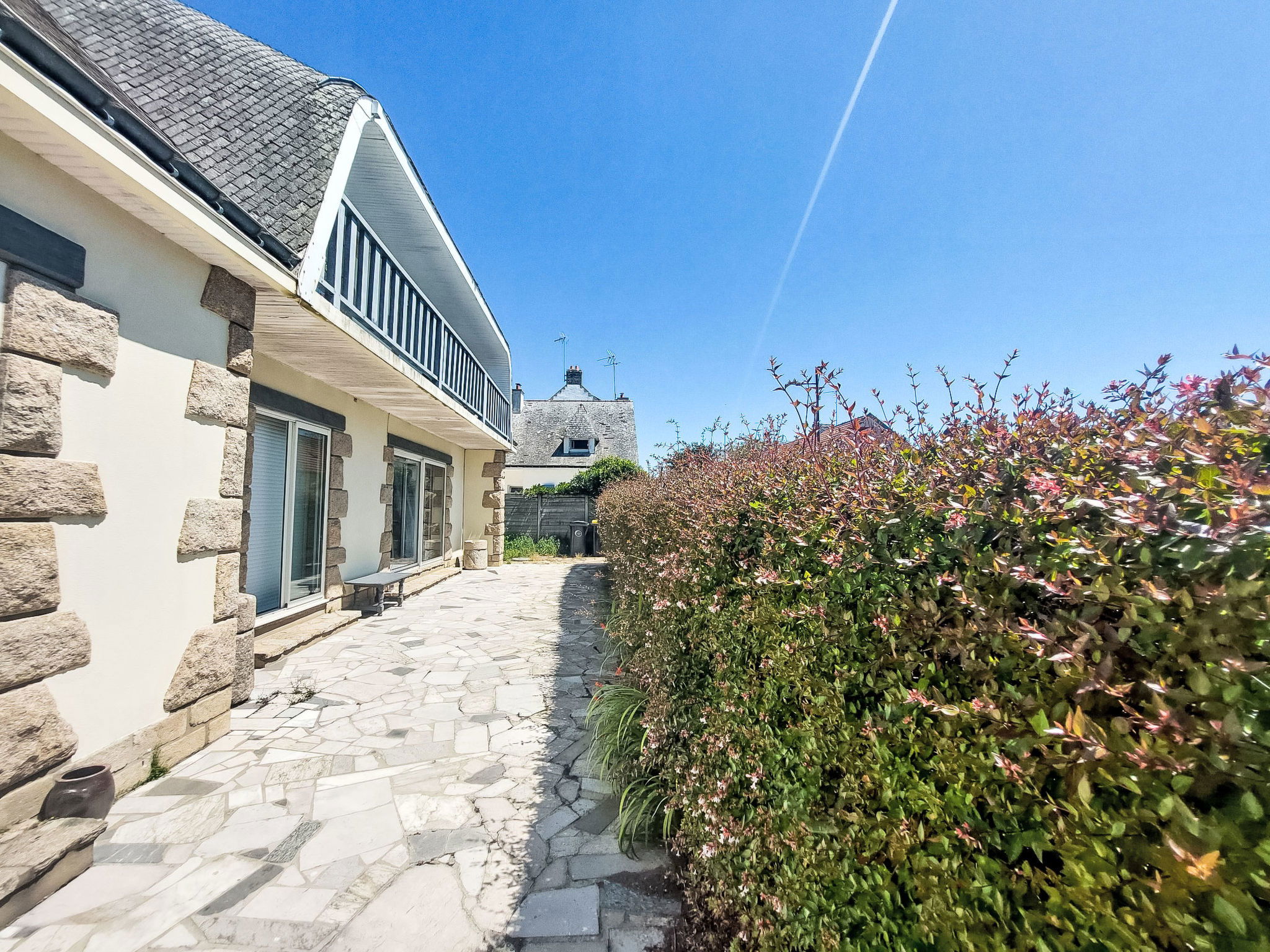 2-family house "Les Voiles". In the resort, 750 m from the centre, 50 m from the sea, 2.5 km from the beach. Private: property (fenced). Shop 500 m, grocery, supermarket 750 m, restaurant, bar 100 m, bakery 1 km, bus stop 200 m, sandy beach "Kerbihan" 2.5 km, thermal baths "Thalazur Carnac" 6000 km. Sports harbour 750 m, golf course (18 hole) 15 km, surf school 11 km, sailing school 1 km. Nearby attractions: Les Alignements de Carnac 5 km, Le Port de la Trinité-sur-mer 750 m, Presqu'île de Quiberon 15 km, Auray & Saint-Goustan 15 km, Vannes 25 km.