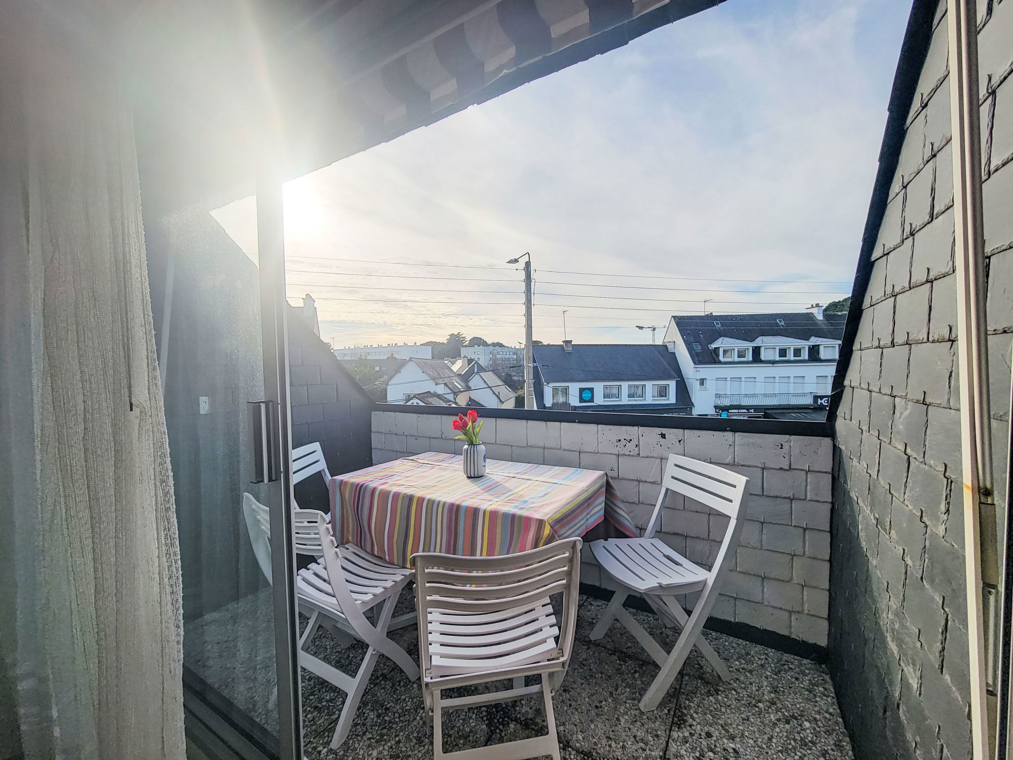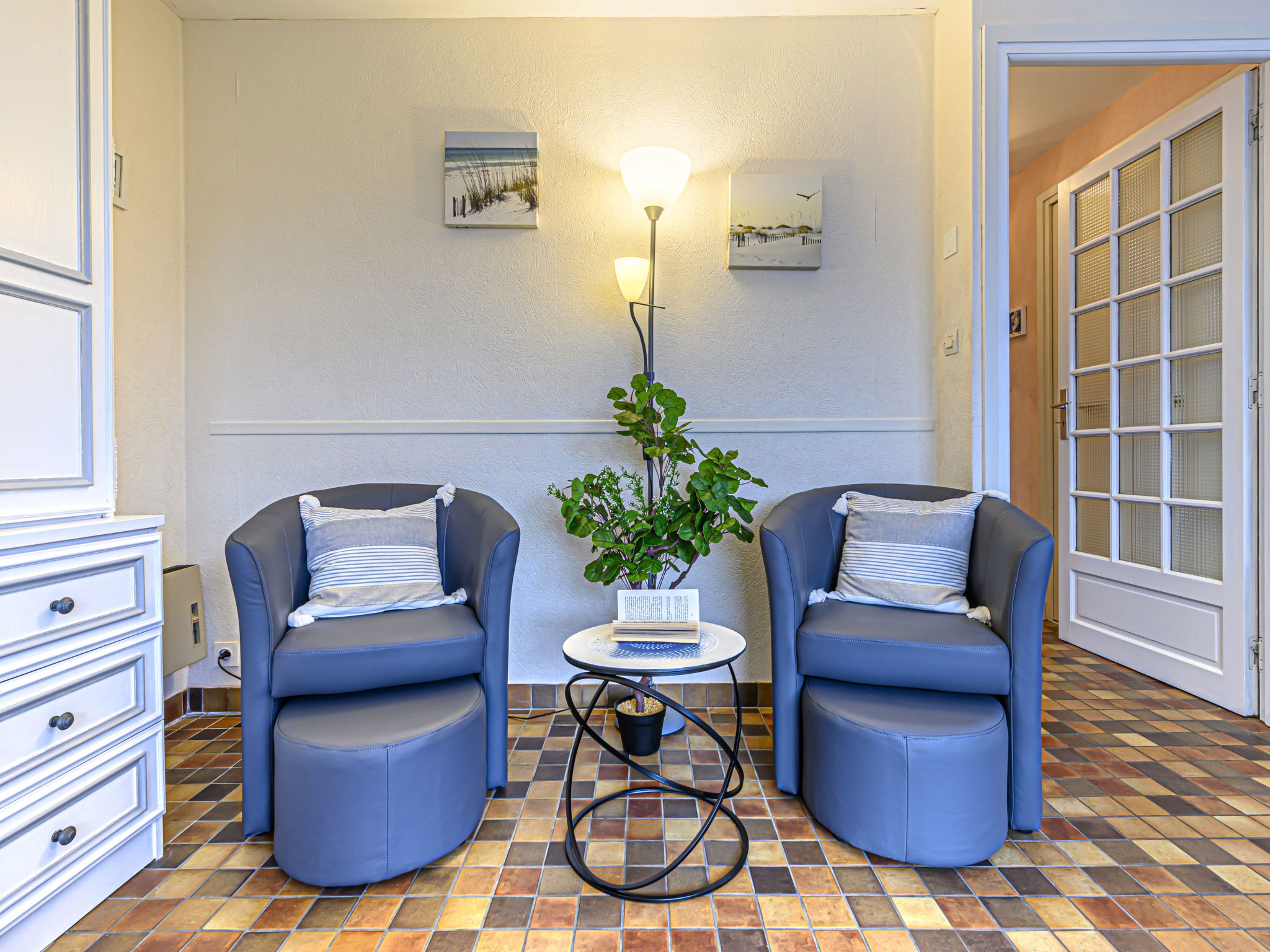 2-room maisonette 41 m2 on 2nd floor. Practical and beautiful furnishings: living/dining room with 1 sofabed (140 cm, length 190 cm), TV. Exit to the balcony. Kitchenette (oven, 3 induction hot plates, microwave, electric coffee machine). Bathroom, sep. WC. Upper floor: 1 room with sloping ceilings with 2 beds (90 cm). Electric heating. Balcony, west facing position. Balcony furniture. Facilities: washing machine, iron. Internet (WiFi, extra). Garage. Please note: smoke alarm. Offer by a private individual according to Art. 155, IV of CGI. 56034000706A9