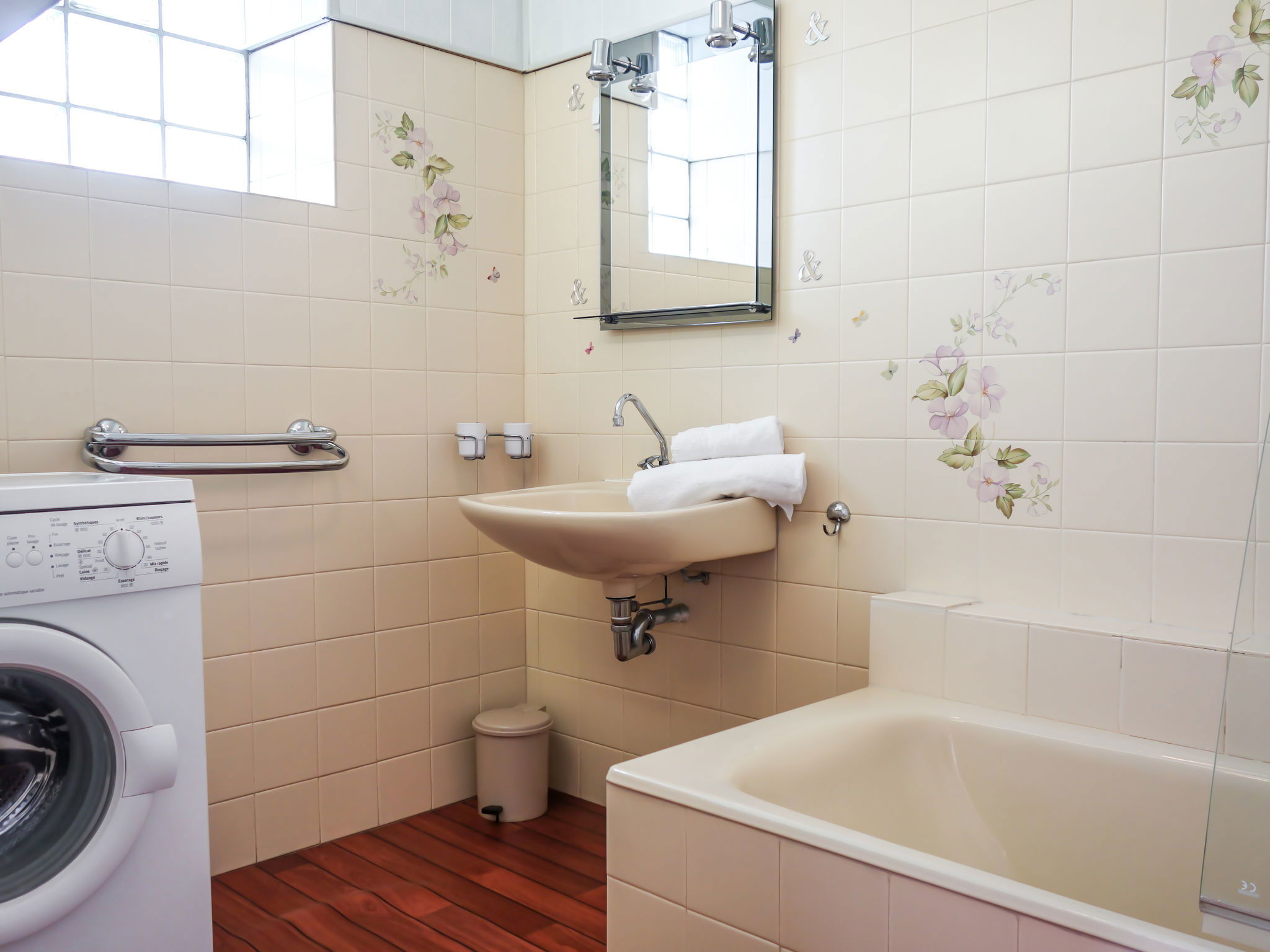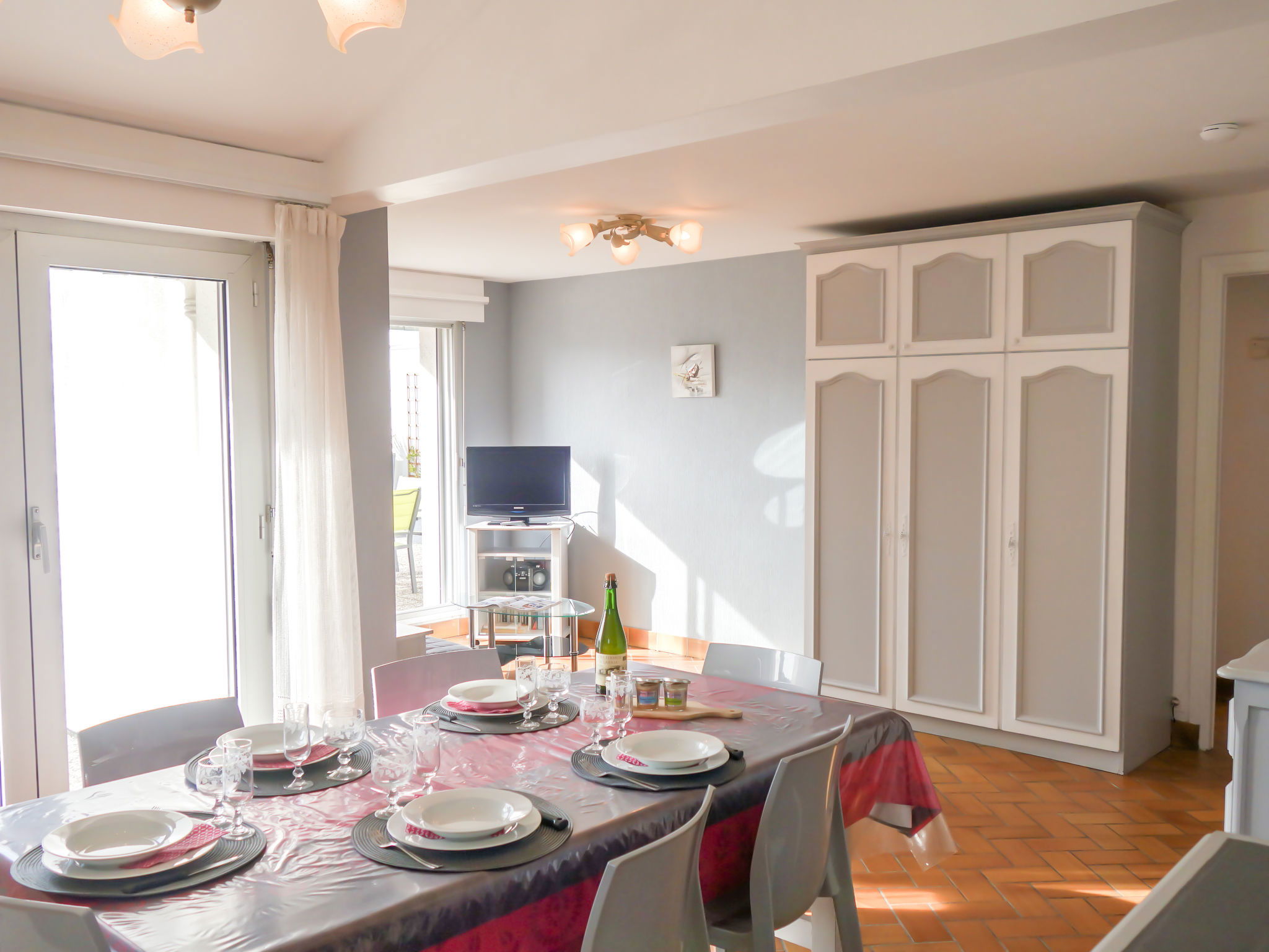 2-room apartment 50 m2 on 1st floor. Spacious, practical and beautiful furnishings: living/dining room with 1 double fold-away bed (1 x 140 cm, length 190 cm), TV. Exit to the terrace, south-west facing position. 1 room with 1 bed (90 cm), 1 french bed (140 cm). Exit to the terrace. Kitchenette (oven, dishwasher, 3 induction hot plates, microwave, electric coffee machine). Bathroom, sep. WC. Electric heating. Large terrace 70 m2. Terrace furniture, barbecue, deck chairs (4). Facilities: washing machine, iron. Internet (WiFi, extra). Parking space n 2. Please note: smoke alarm.