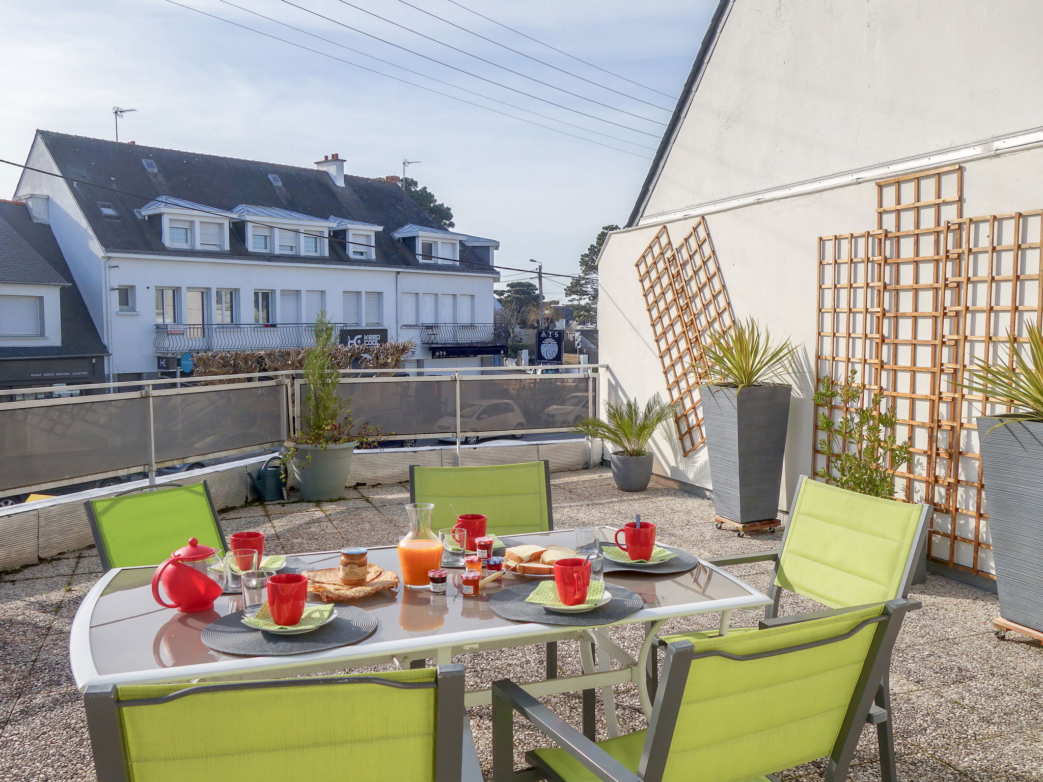 Apartment house "Les Embruns", 2 storeys. In the centre of Carnac, 300 m from the sea, 300 m from the beach. Shop 50 m, supermarket 500 m, restaurant, café, sandy beach "Grande plage de Carnac" 300 m. Golf course (18 hole) 13 km, sailing school 1 km. Nearby attractions: Vannes 34 km, La Trinité sur Mer 5 km, Golfe du Morbihan, Presqu'île de Quiberon 18 km, Alignements de Carnac 6 km, Thalassothérapie 300 m. Please note: no lift. The owner does not accept any youth groups.