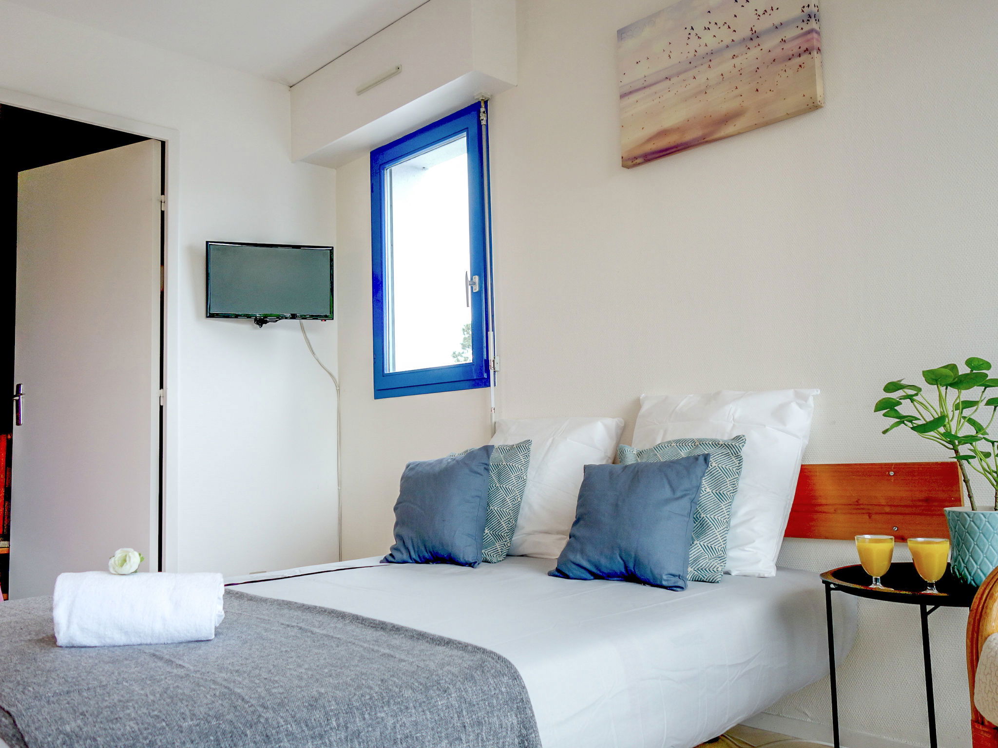 Apartment block "Plein Ciel", 2 storeys. In a central, quiet position, 150 m from the sea, 150 m from the beach. In the house: storage room for bicycles. Shop 2 km, supermarket 500 m, restaurant 2 km, café 2 km, sandy beach "Plage du men Du -Anse de Beaumer" 200 m, thermal baths "Thalassothérapie de Carnac" 3 km. Sailing school 3 km. Nearby attractions: Vannes 35 km, Lorient 50 km, Thalassotherapie 3 km, Alignements de Carnac 4.5 km, Presqu'île de Quiberon 20 km, La Trinité 3 km.