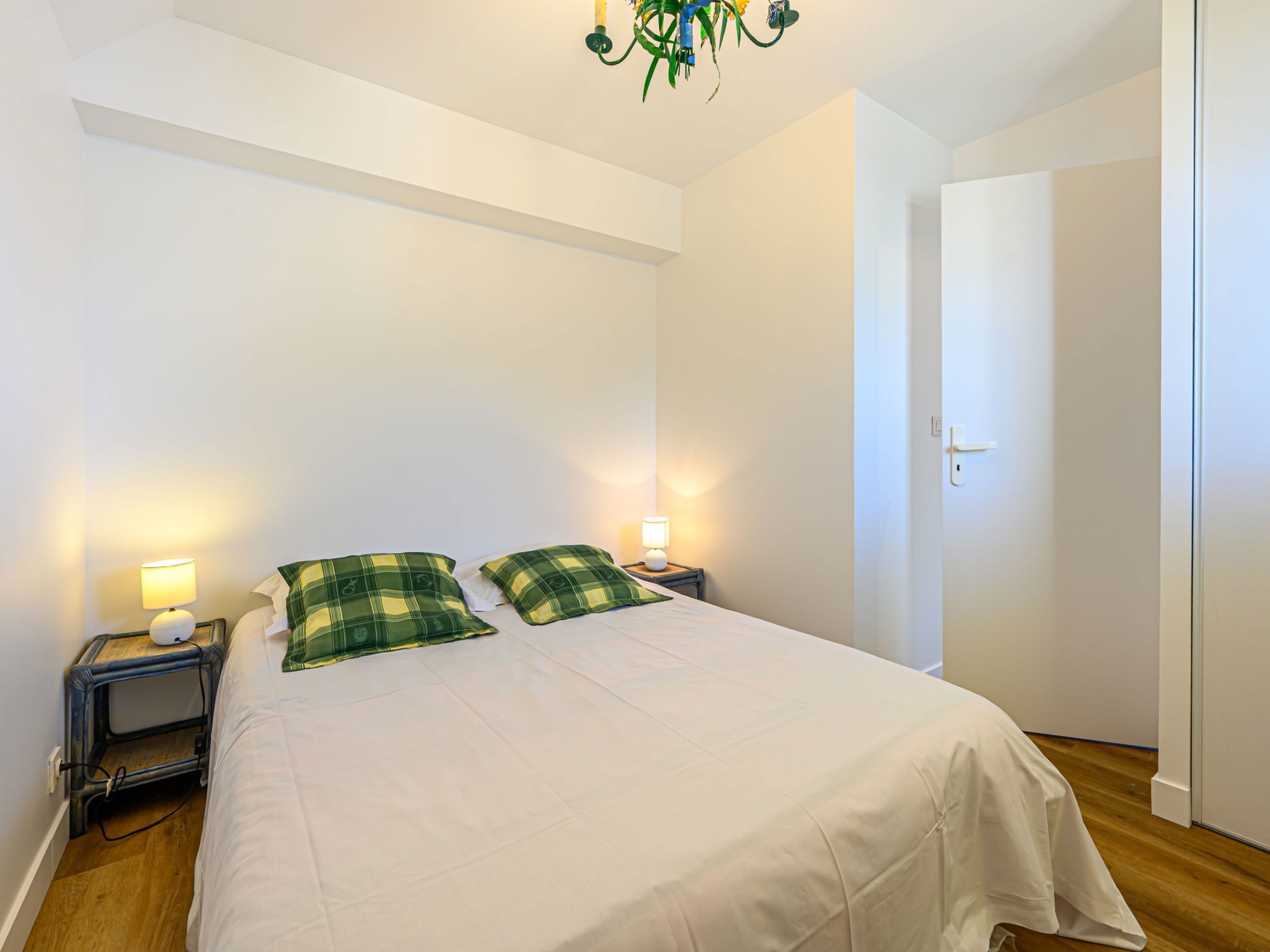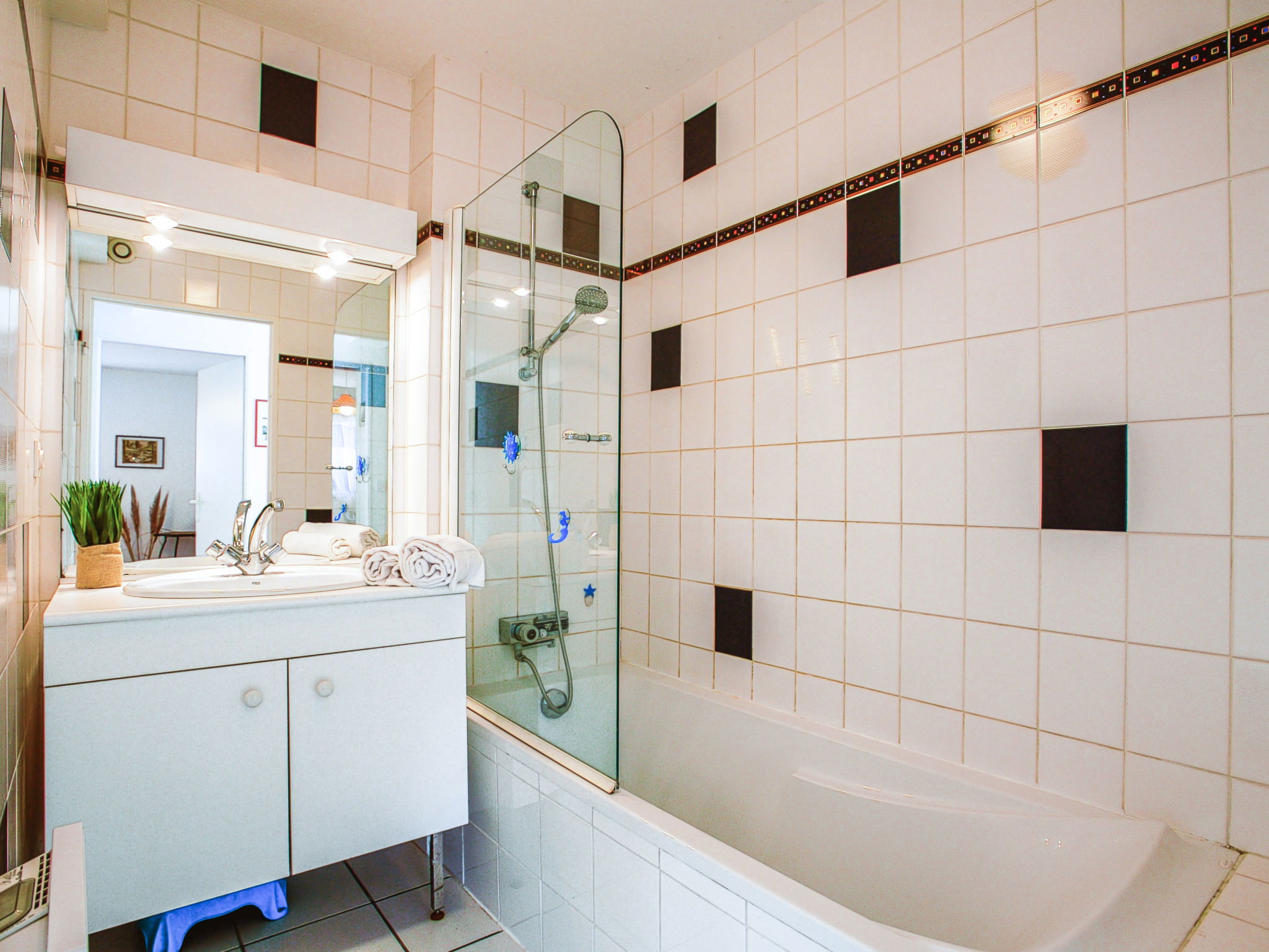 4-room apartment 60 m2 on 2 levels, on the ground floor, south facing position. Comfortable furnishings: living/dining room with TV (flat screen). Exit to the terrace. 1 room with 2 beds (80 cm, length 190 cm). Kitchenette (oven, dishwasher, 4 ceramic glass hob hotplates, microwave, electric coffee machine). Bathroom, sep. WC. Upper floor: 1 room with 1 french bed (140 cm, length 190 cm). 1 room with 1 bed (90 cm, length 190 cm). Shower, sep. WC. Electric heating. Terrace 10 m2. Terrace furniture, deck chairs (2). Facilities: washing machine, baby cot. Internet (WiFi, free). Parking space n 5. Please note: TV only FR. Smoke alarm. 5603400069502