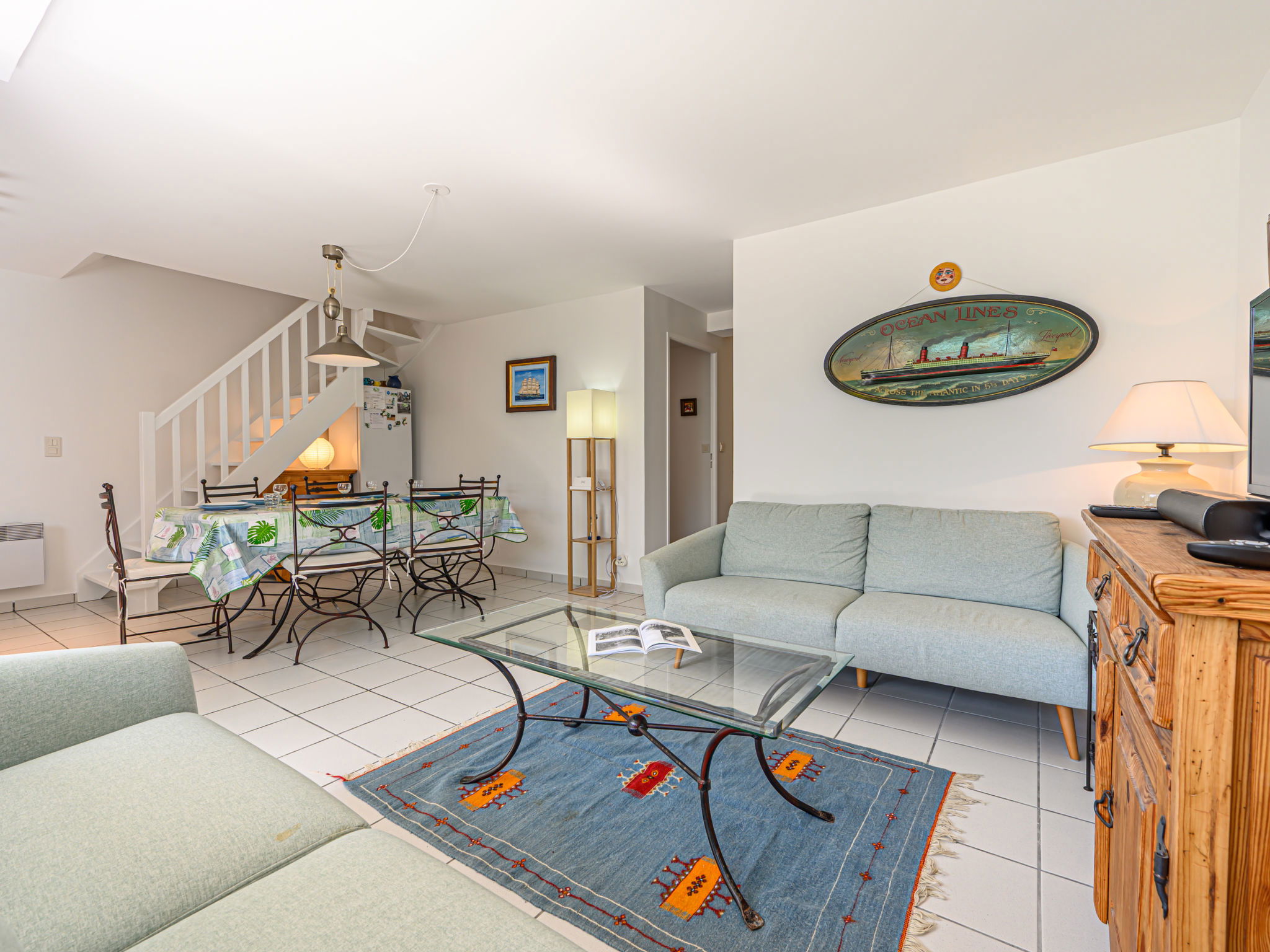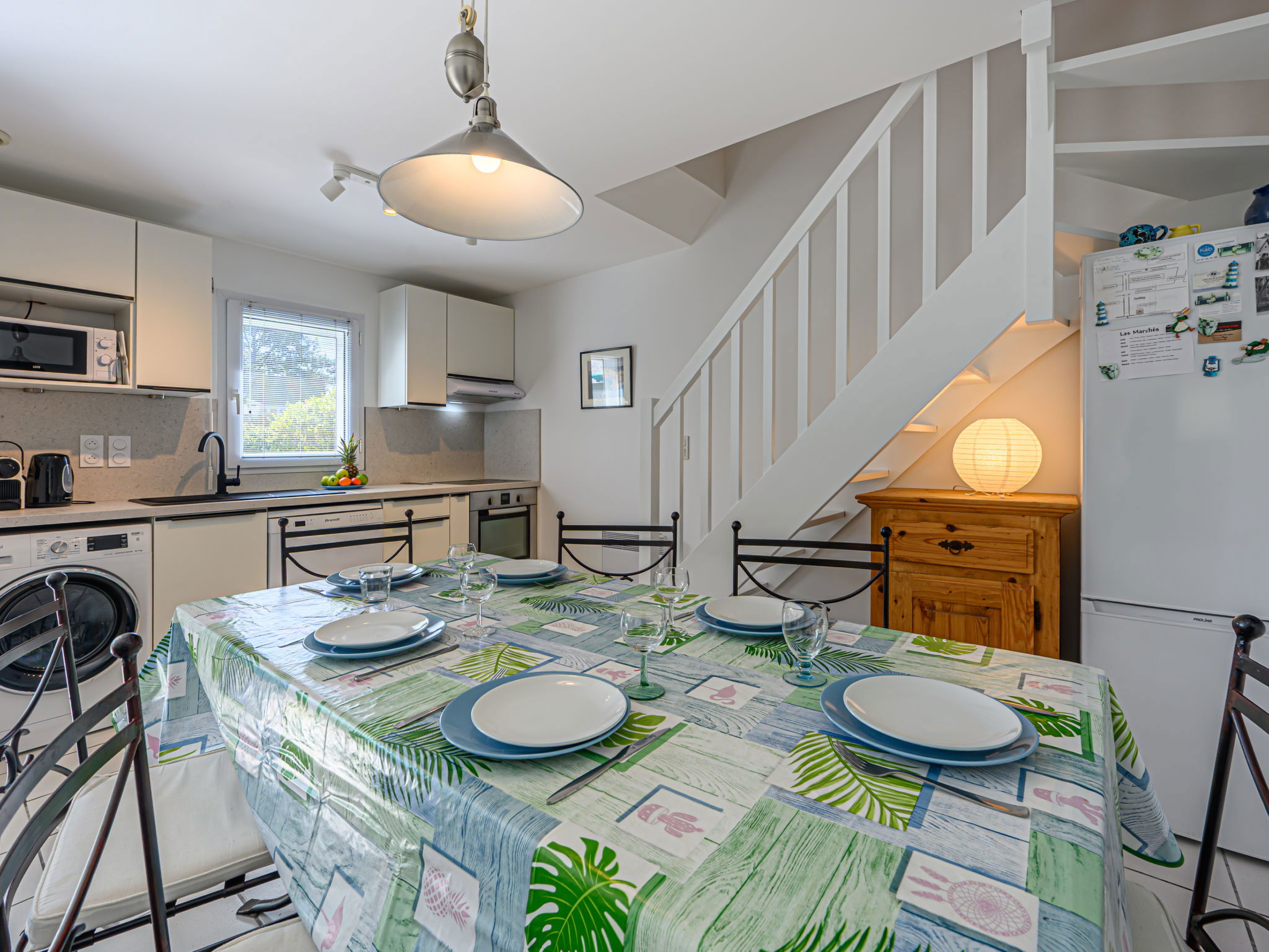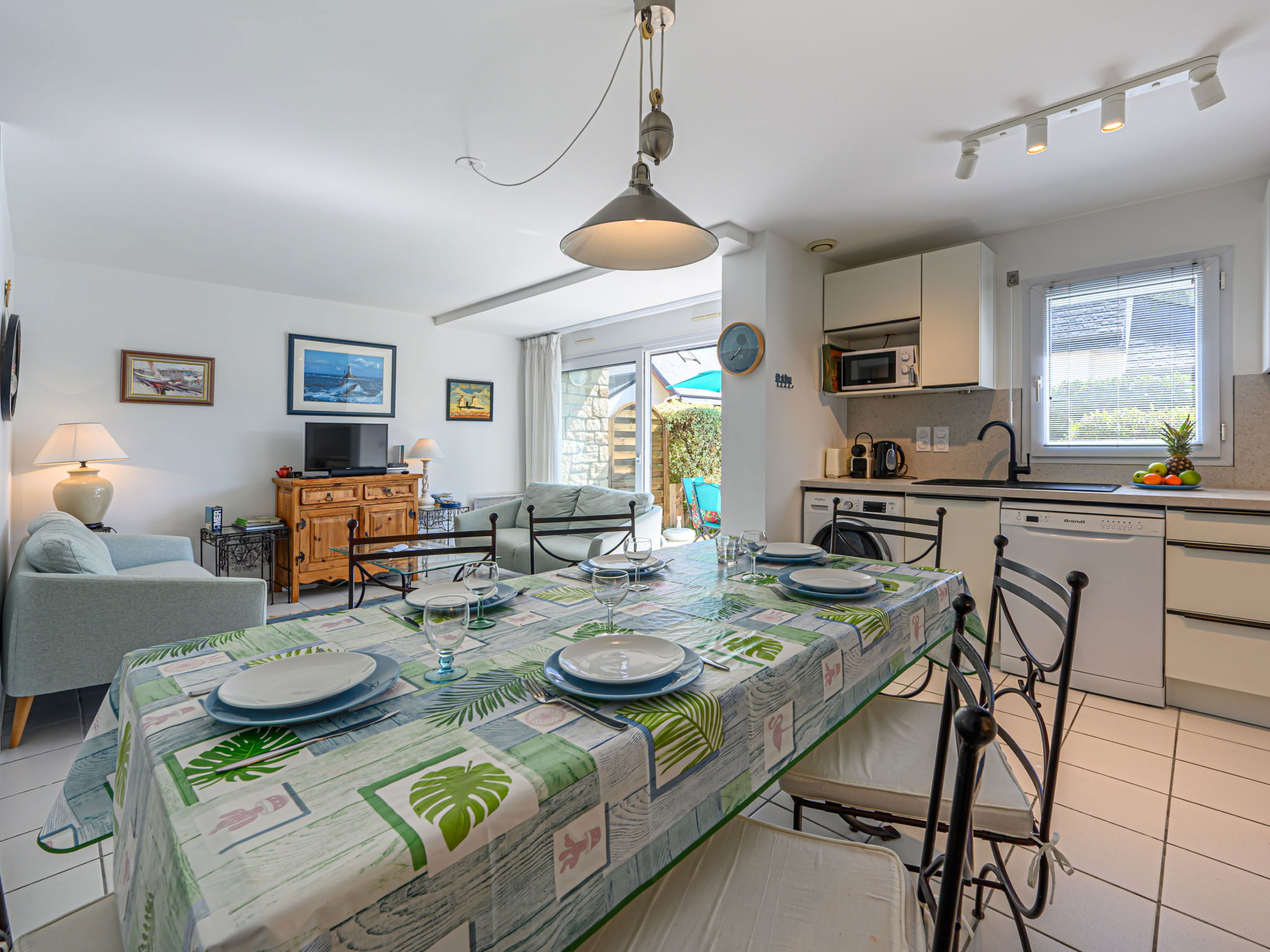 Apartment block "Le Parc des Druides", 2 storeys. In the resort, in a quiet position in the residential district, 250 m from the sea, 250 m from the beach. Shop 900 m, supermarket 200 m, restaurant 500 m, bakery 500 m, bicycle rental 300 m, railway station 15 km, sandy beach "Grande Plage" 250 m, thermal baths "Thalazur Carnac" 1.2 km. Golf course (18 hole) 12 km, sailing school 1.4 km, tennis 900 m, riding stable 4 km. Nearby attractions: Alignements de Carnac 3.5 km, La Trinité sur Mer 4 km, Presqu'ile de Quiberon 15 km, Vannes 35 km, Lorient 52 km. Hiking paths: Golfe du Morbihan.