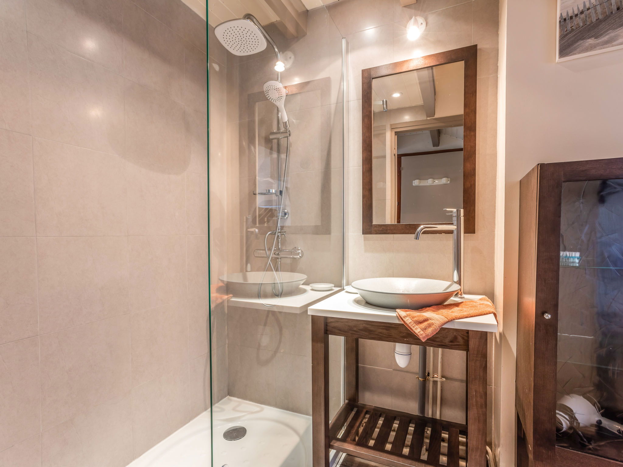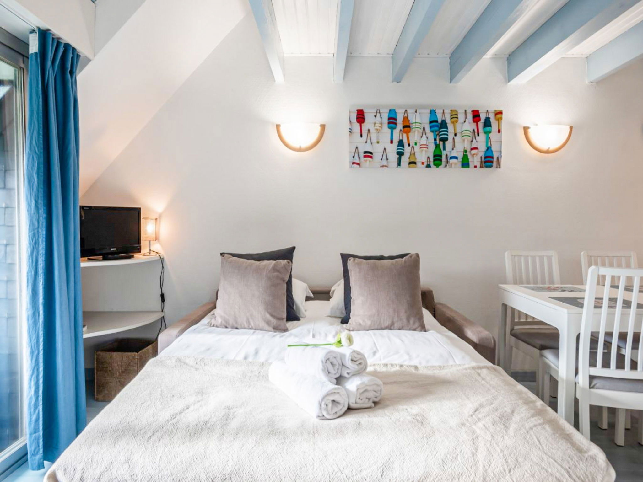 2-room maisonette 35 m2 on 2nd floor. Comfortable furnishings: living/dining room with 1 double sofabed (1 x 140 cm, length 190 cm), TV (flat screen). Kitchenette (dishwasher, 2 ceramic glass hob hotplates, electric coffee machine, combination microwave). Exit to the balcony. Shower/WC. Upper floor: 1 room with 2 beds (80 cm, length 200 cm). Electric heating. Balcony 6 m2. Balcony furniture, deck chairs (2). View of the garden. Facilities: washing machine, iron, hair dryer. Internet (WiFi, free). Parking space n 34. Please note: non-smokers only. Possibility of joining the two 0.80 beds into a 160 bed. 560340006578C