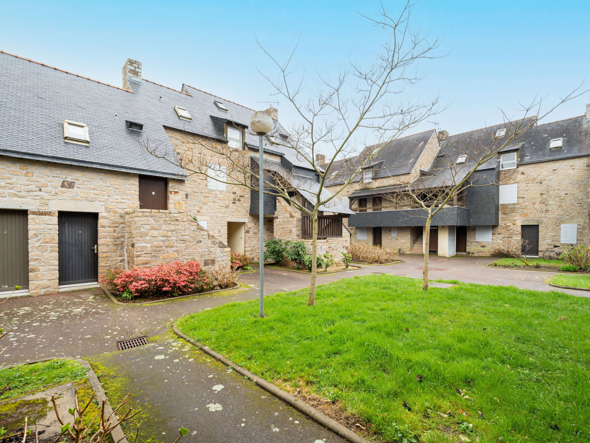 Apartment block "Les Alizés", 2 storeys. In the resort 1.5 km from the centre of Carnac Plage, from the sea, 200 m from the beach. In the complex: storage room for bicycles. Shop 1.5 km, supermarket 200 m, restaurant 300 m, café, sandy beach "Grande Plage de Carnac" 200 m, diving center 4 km, thermal baths "Thalassothérapie Thalazur" 1.8 km. Sports harbour 4 km, golf course (18 hole) 18 km, sailing school 1.8 km, tennis 400 m, riding stable 4 km. Nearby attractions: La Trinité sur Mer 4 km, Les Alignements de Carnac 4 km, La Presqu'ile de Quiberon 15 km, Auray 15 km, Vannes 35 km, Lorient 65 km. Hiking paths: Le Golfe du Morbihan.