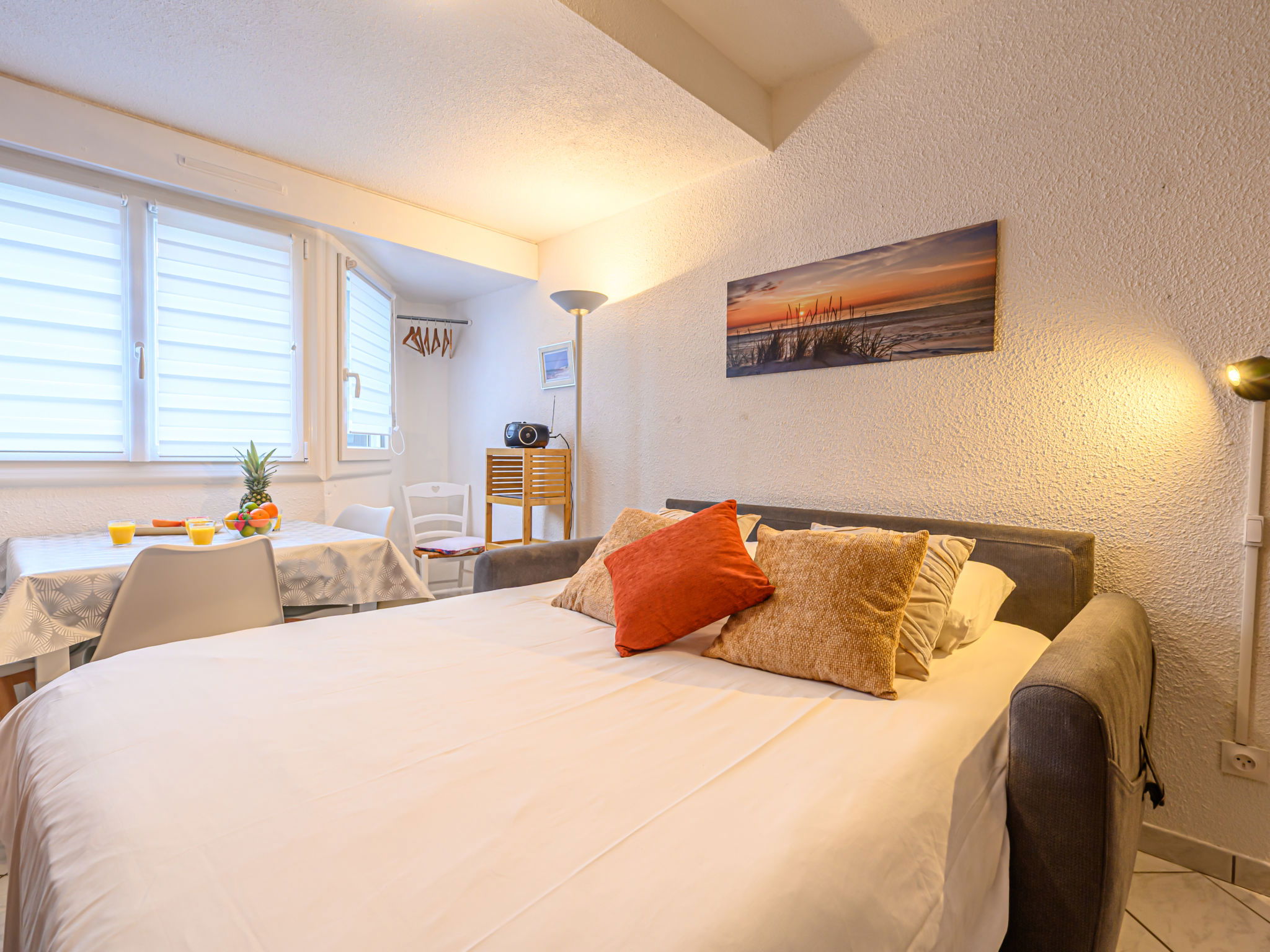 1-room apartment 25 m2 on 1st floor. Living/dining room with 1 sofabed (140 cm, length 190 cm), TV (flat screen) with 1 bed (90 cm, length 190 cm), TV (flat screen). Kitchenette (oven, dishwasher, 4 induction hot plates, microwave, freezer, electric coffee machine). Shower, sep. WC. Electric heating. Facilities: iron, hair dryer. Internet (WiFi, free). Parking space n 110. Please note: smoke alarm. 5603400082569