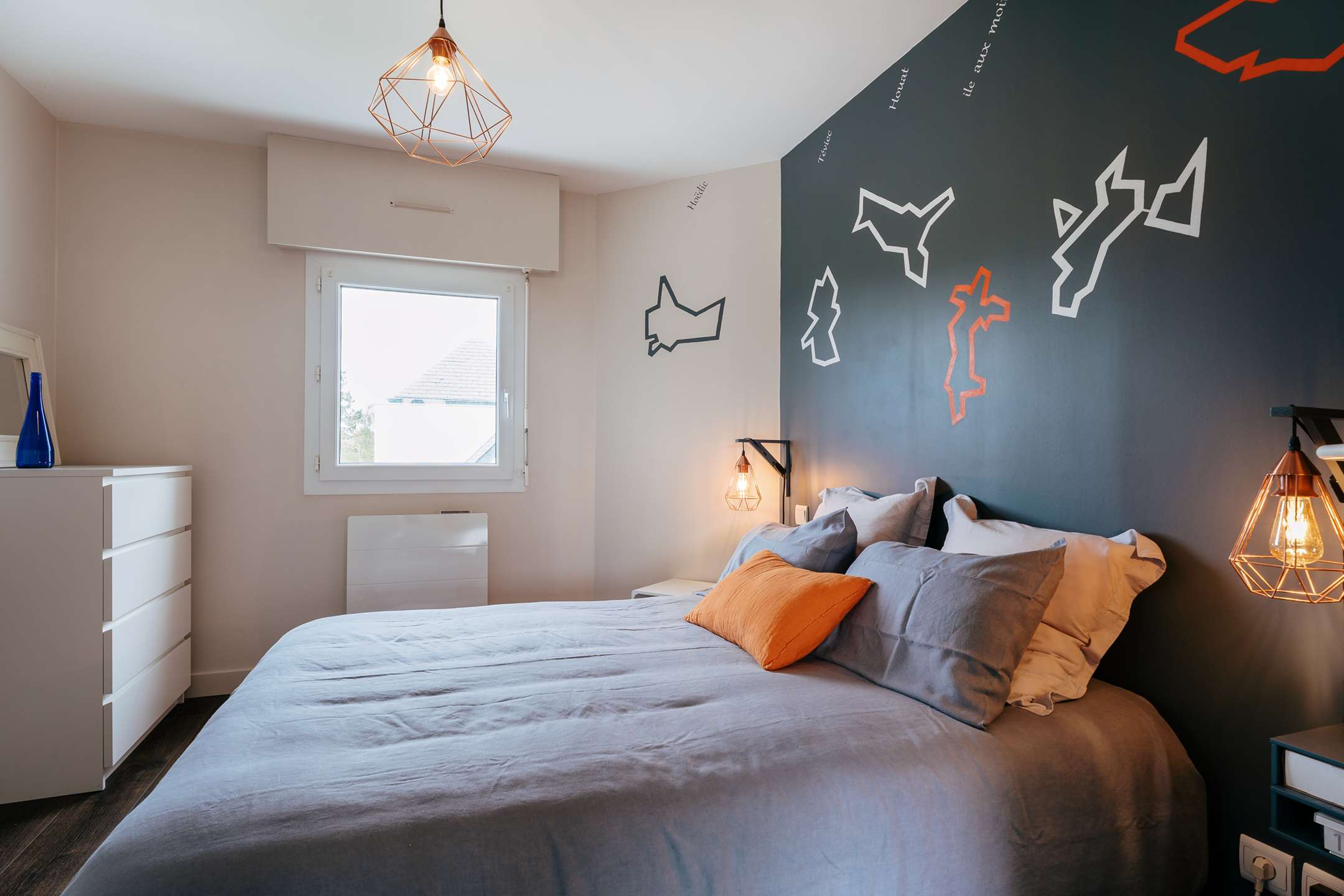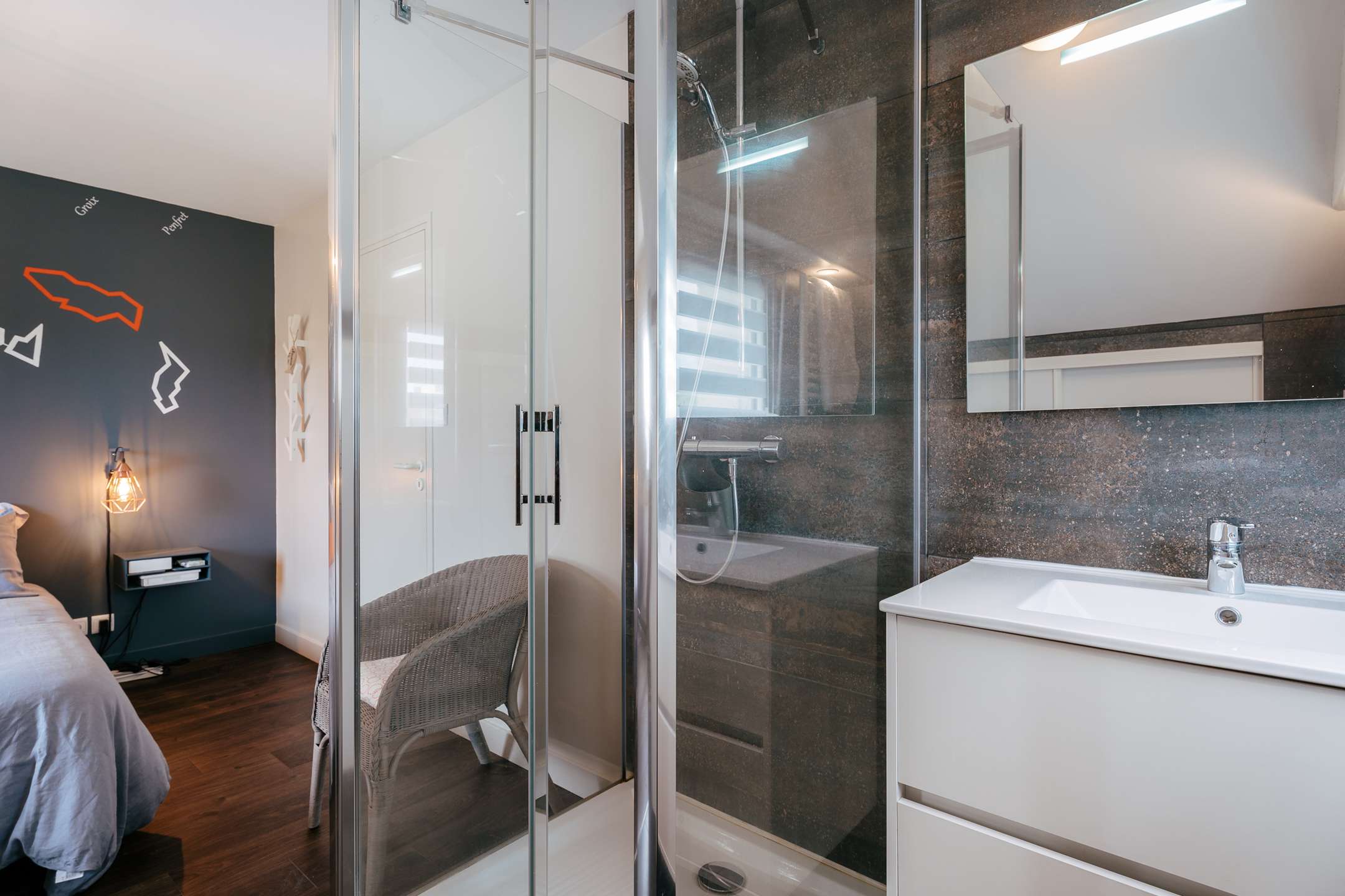 - 1 master suite with 1 double bed (140, duvet) and en-suite openned shower room (flat shower)