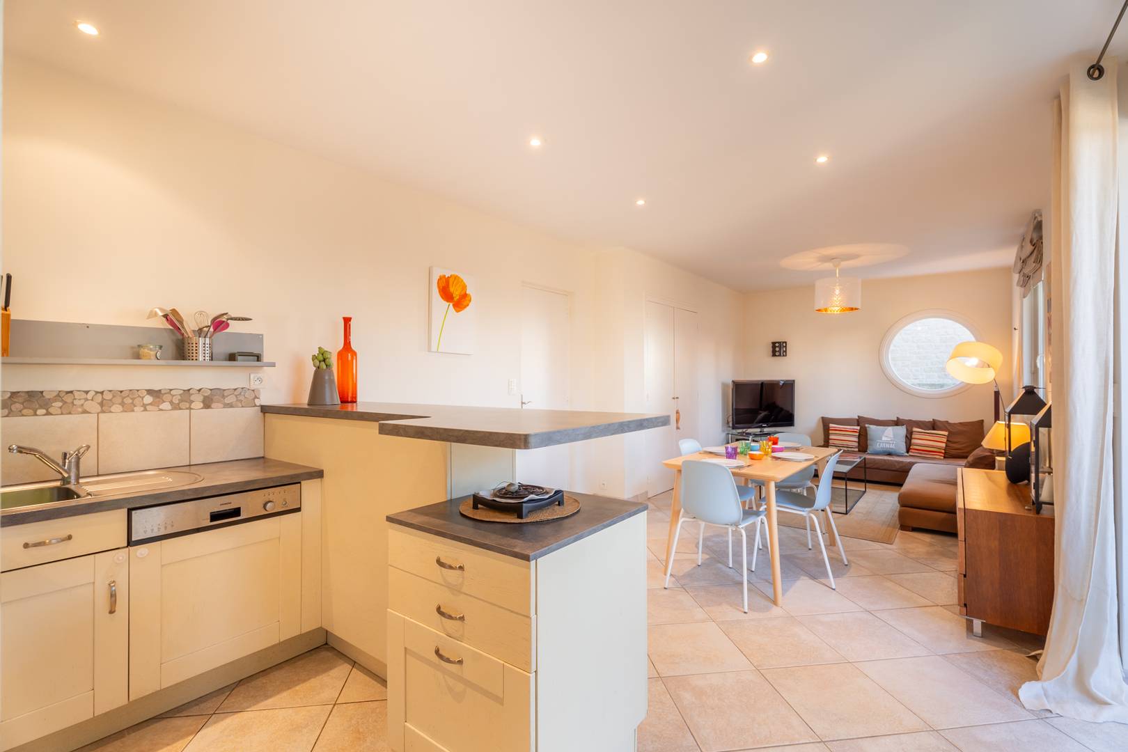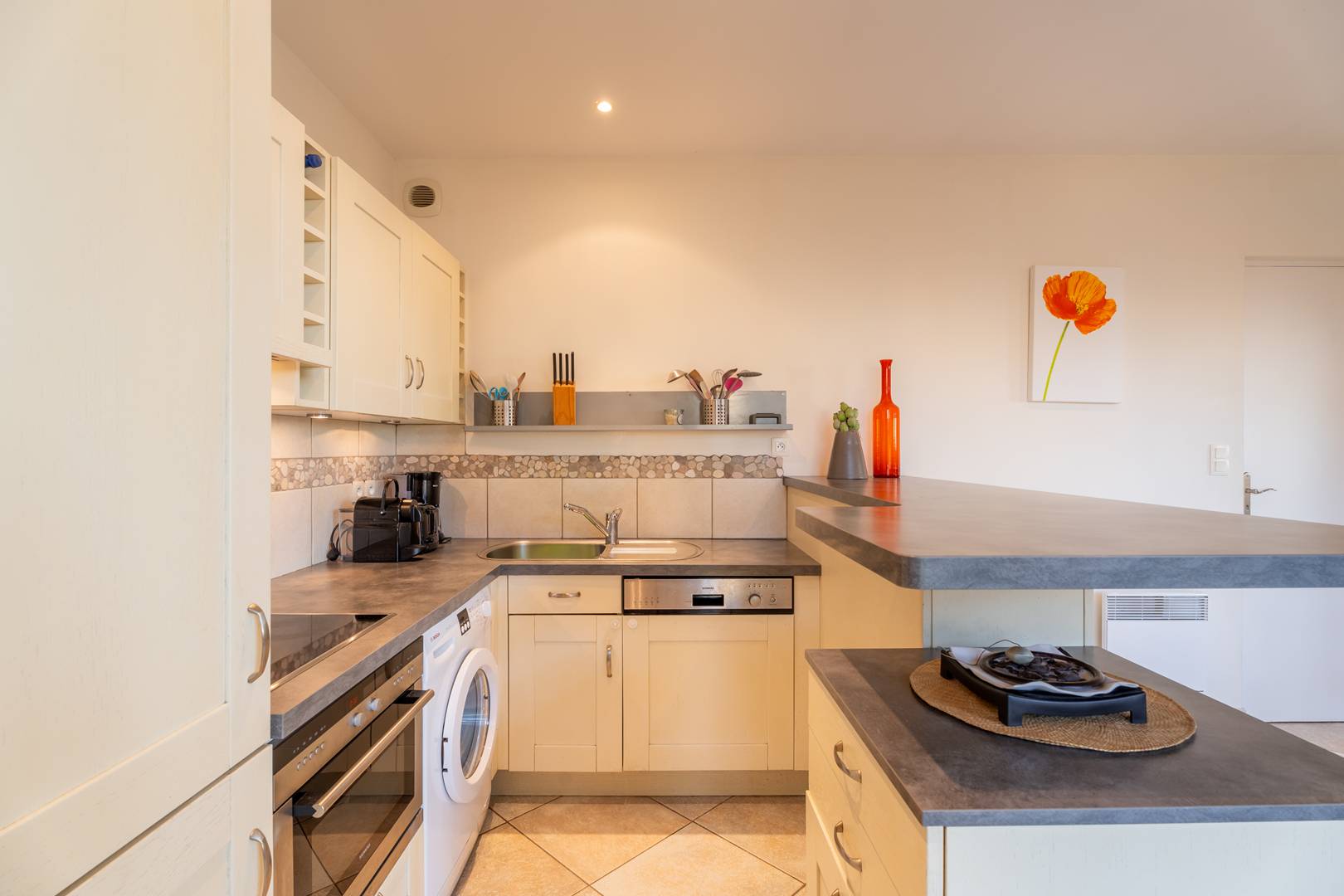 - Direct entrance through the open-plan and fully equipped kitchen (4-ring induction hob, combined oven/microwave, dishwasher, refrigerator, freezer, washing machine)