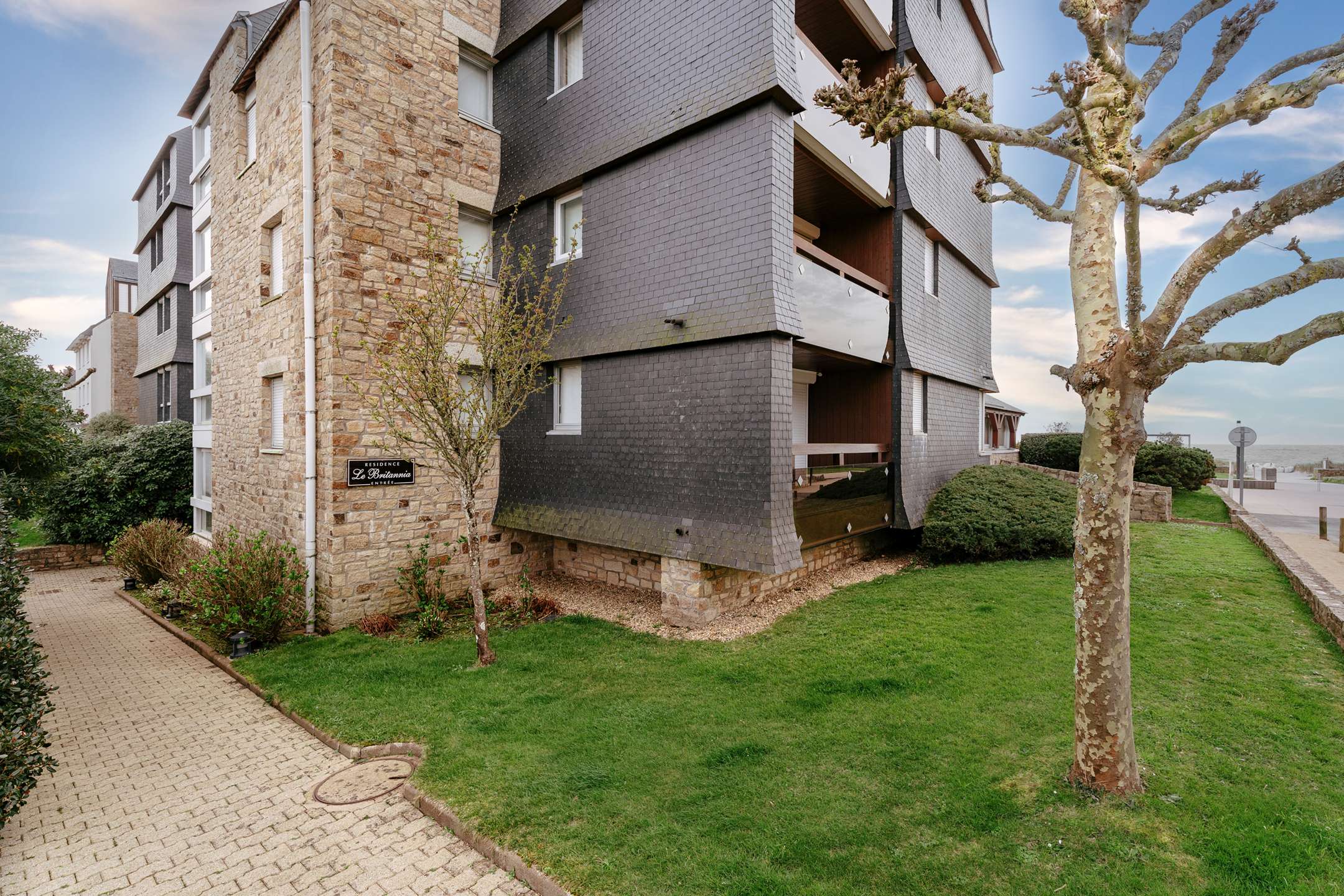 Facing the Grande Plage in Carnac, close to shops, studio (approx. 22m²) for 2 people with a full South-facing balcony and stunning sea view, located in Residence LE BRITANNIA (4th floor - elevator - door 408) :