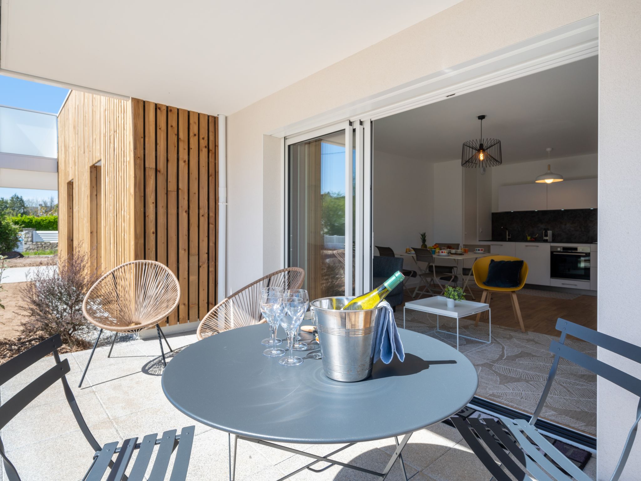 Modern, comfortable apartment block "Hemisphère", 2 storeys, built in 2022. In a position. Available: bicycles (2). Shop, supermarket, bakery 500 m, sandy beach "Grande Plage de Carnac" 1.2 km, park "Cézarine" 50 m, thermal baths "Thalassothérapie Thalazur" 2 km. Golf course (18 hole) 15 km, surf school 6 km, sailing school 2 km. Nearby attractions: Les Alignements de Carnac 5 km, La Trinité sur Mer 5 km, Presqu'ile de Quiberon 15 km, Vannes 30 km, Lorient 45 km, Belle Ile en Mer, Houat, Hoedic. Hiking paths: Le Golfe du Morbihan 30 km. Walking market (250m) on Wednesday and Sunday.