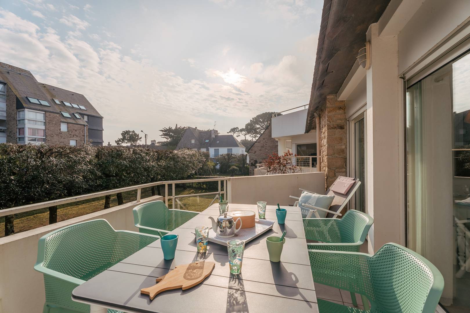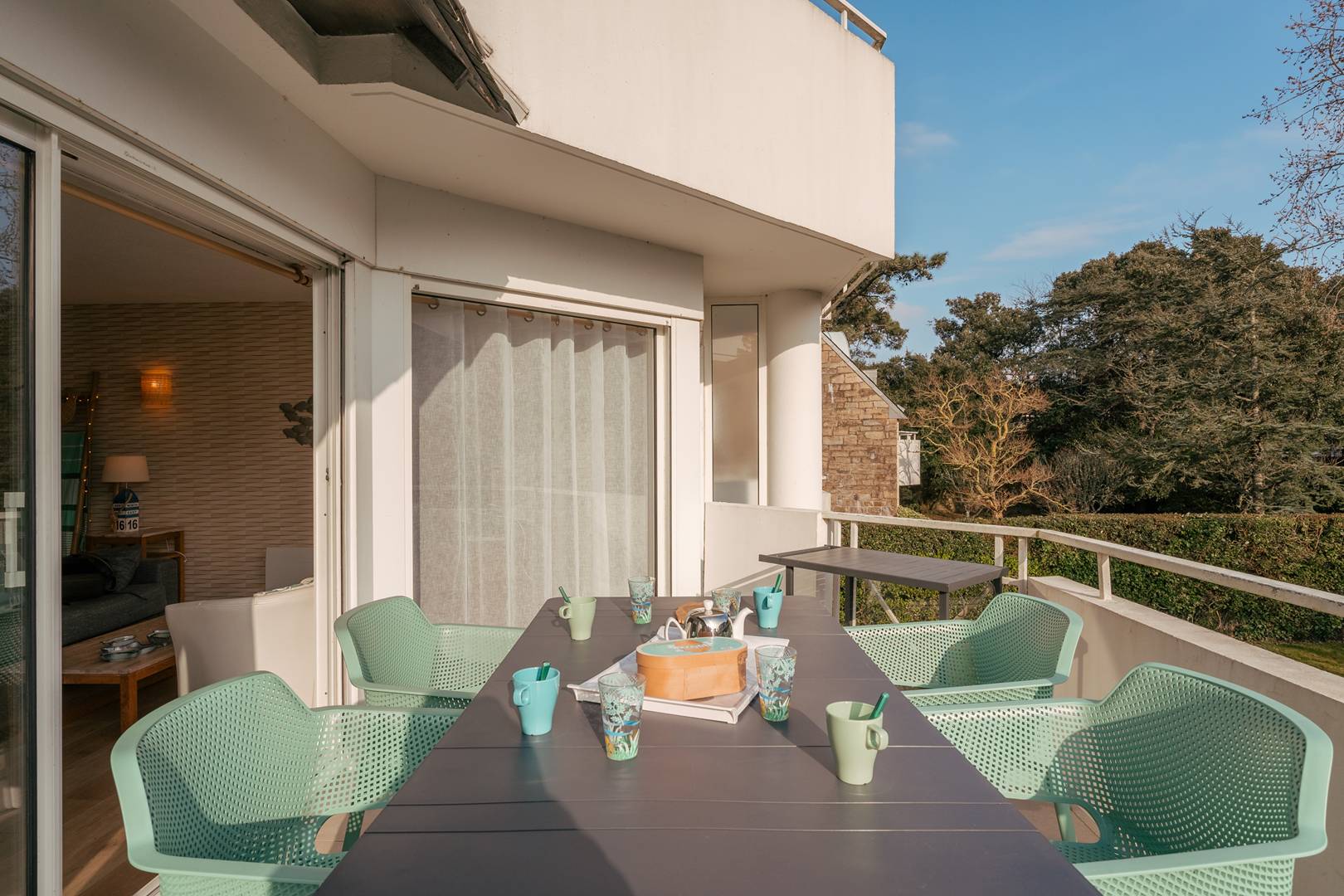 In the center of Carnac Plage, 150m from the Grande Plage, beautiful 3-room apartment (approx. 61m²) for 6 people, view of the garden of the residence, located in the Residence ALBION (on the 2nd floor, door 6) :
