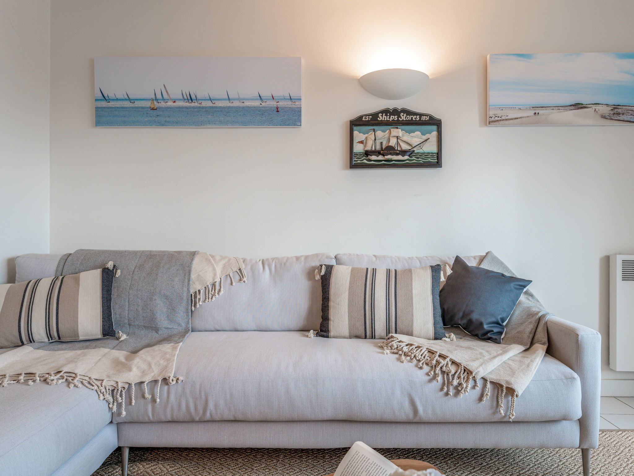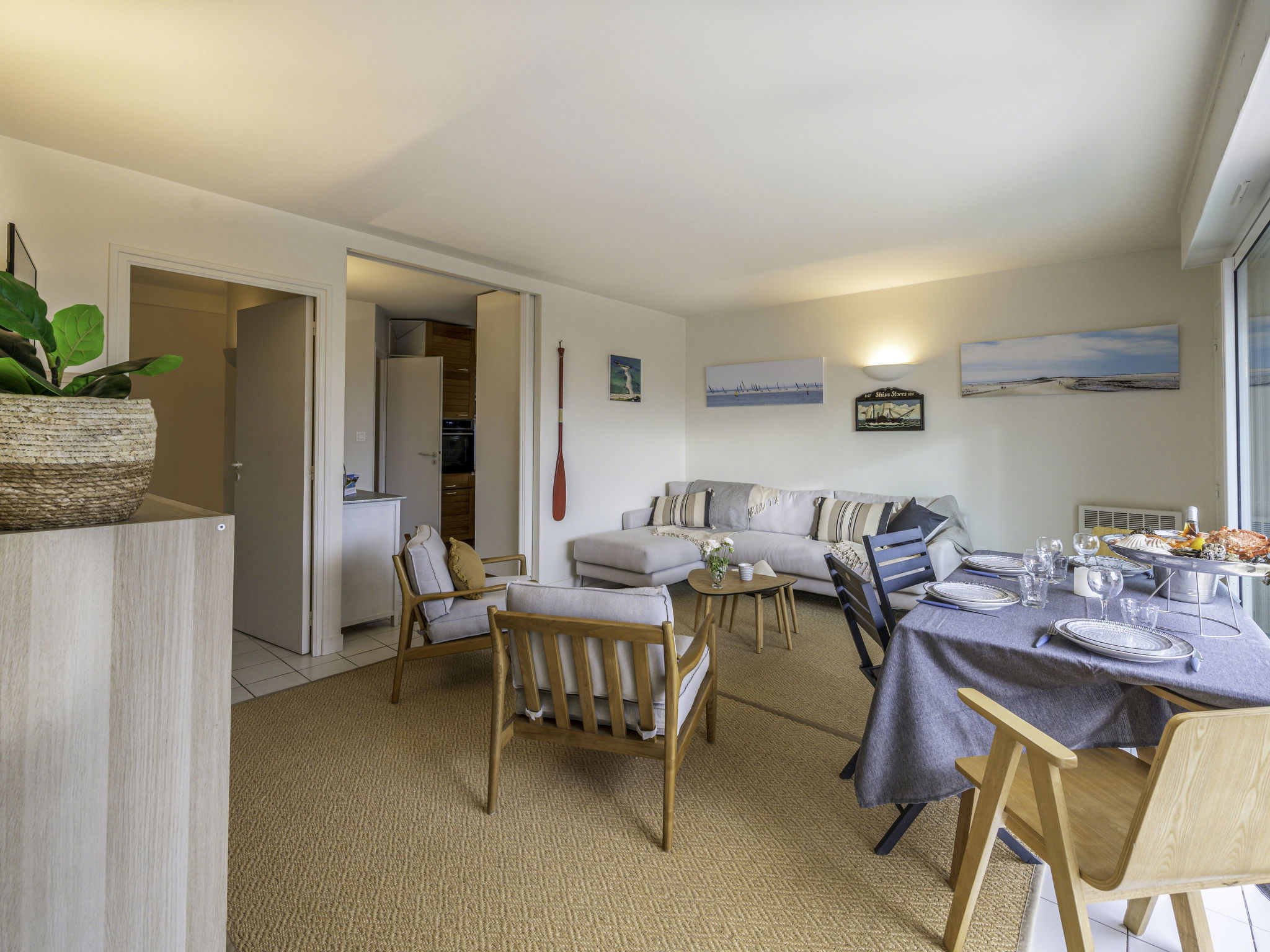 Residence "Baie de Beaumer". In the residential district, 50 m from the sea, 50 m from the beach, direct access to the beach. In the house: lift. Parking. Shop, supermarket, restaurant, café 850 m, sandy beach "Beaumer" 20 m. Sports harbour 3.5 km, golf course (18 hole) 15 km, sailing school 1 km. Nearby attractions: Alignements dolmens et menhirs, Presqu'île de Quiberon 15 km, Vannes 30 km, Lorient 50 km.