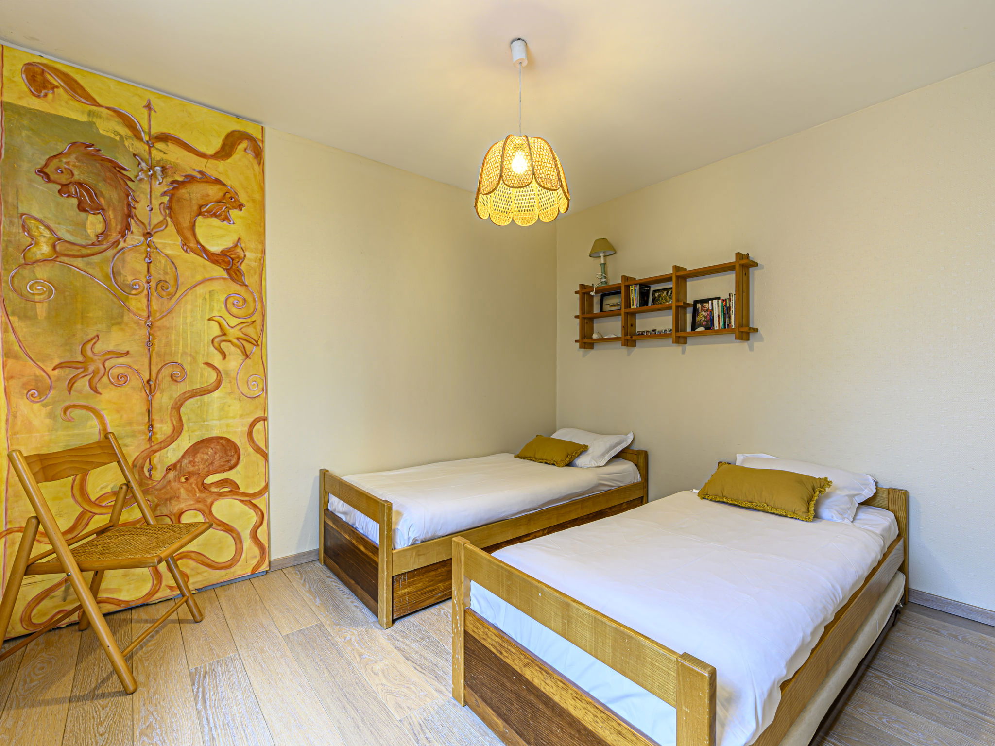 "Les Terrasses de la Plage", 2-room apartment 40 m2, on the ground floor. Living/dining room with 1 double sofabed (1 x 140 cm, length 190 cm), TV (flat screen). Exit to the terrace. 1 room with 2 beds (80 cm, length 190 cm). Kitchenette (oven, dishwasher, 3 ceramic glass hob hotplates, toaster, kettle, electric coffee machine). Shower, sep. WC. Electric heating. Terrace 5 m2, south facing position. Terrace furniture. View of the sea. Facilities: washing machine, hair dryer. Internet (WiFi, extra). Please note: smoke alarm. Offer by a private individual according to Art. 155, IV of CGI. 56034000712F1