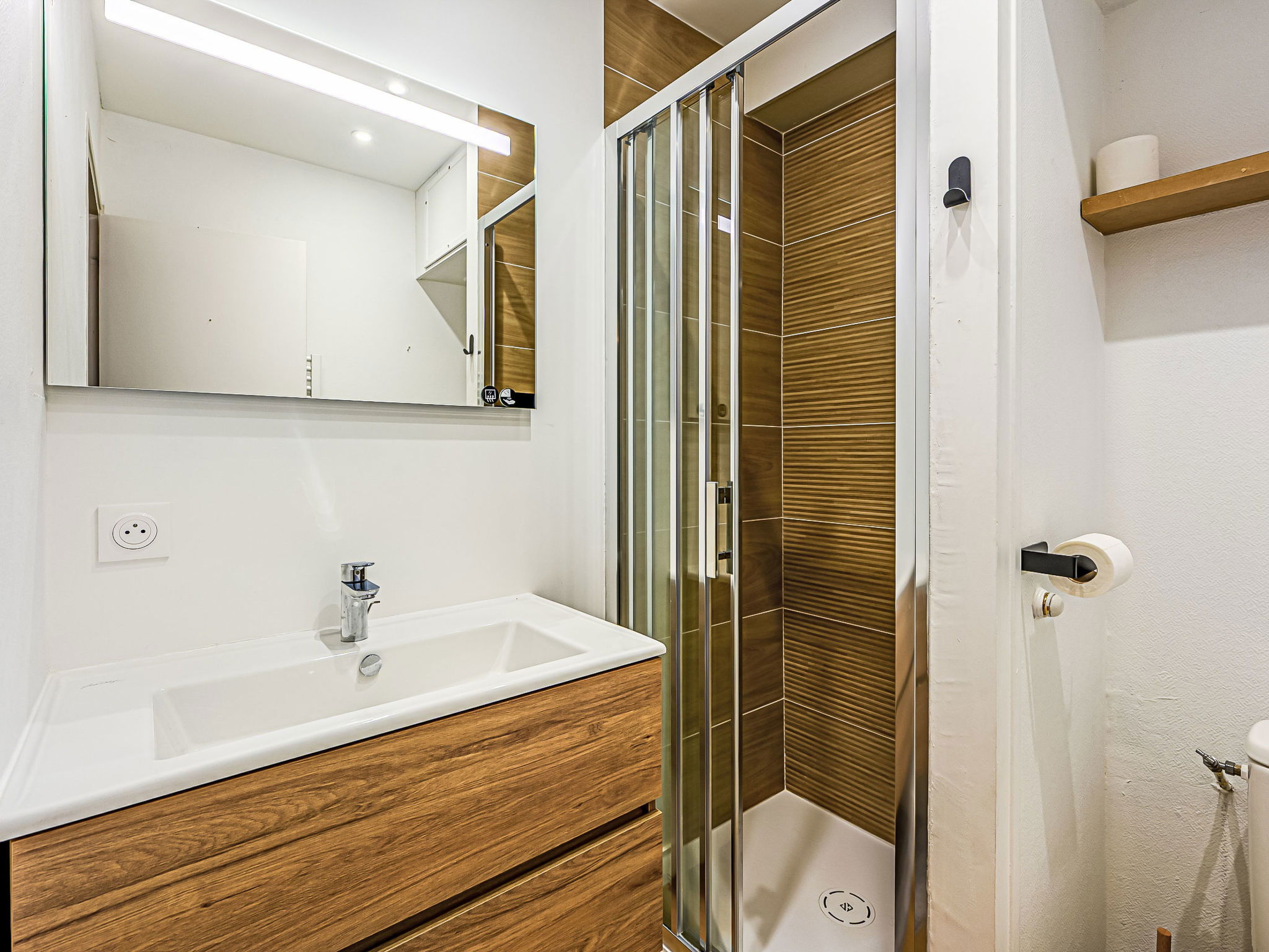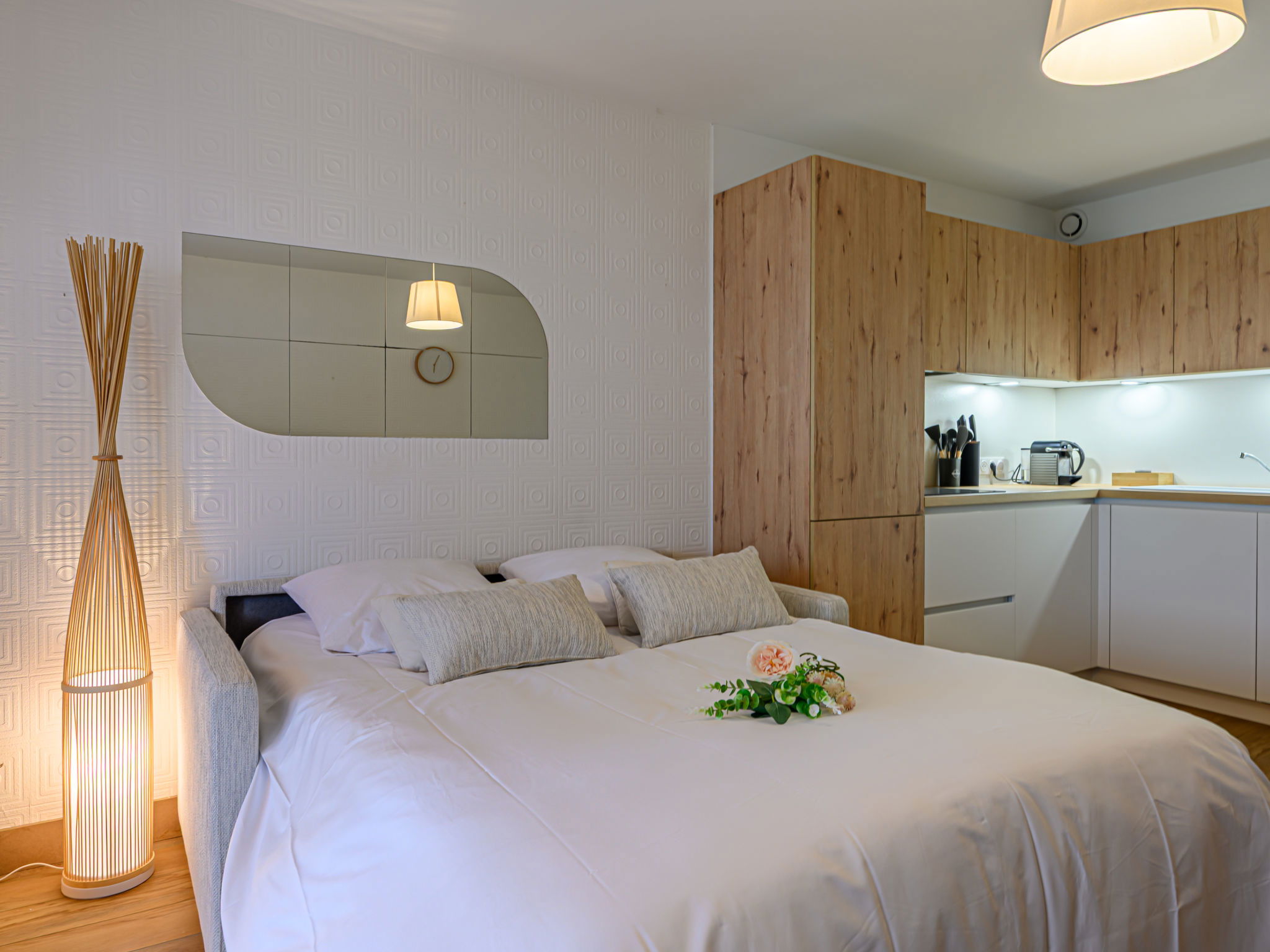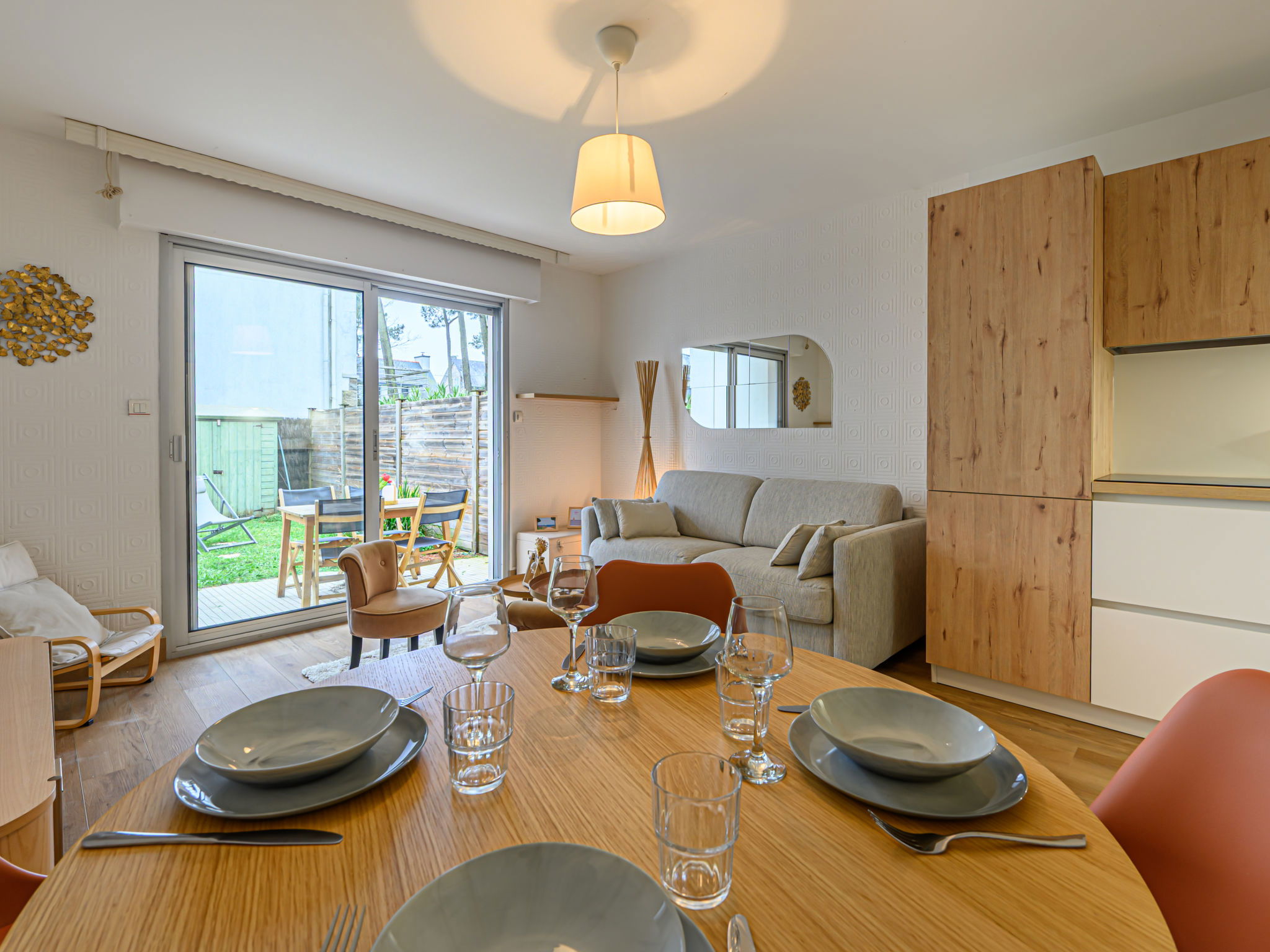 1-room studio 31 m2, on the ground floor. Fully renovated in 2025: living/dining room with 1 sofabed (140 cm, length 190 cm), TV (flat screen). Exit to the terrace. Sleeping alcove with 1 x 1 bunk beds (90 cm, length 190 cm), 1 french bed (1 x 140 cm, length 190 cm). Kitchenette (2 hot plates, oven, dishwasher, toaster, kettle, microwave, electric coffee machine, raclette grill). Shower/WC. Electric heating. Terrace 4 m2, south facing position, patio 15 m2, south facing position. Terrace furniture, barbecue. Facilities: washing machine, hair dryer. Internet (WiFi, free). Parking (1 car). Please note: smoke alarm. Gas barbecue. Bed layout is flexible. There are more sleeping options available than the maximum number of people allowed which may, however, not be exceeded. Offer by a private individual according to Art. 155, IV of CGI. 56034000433A9