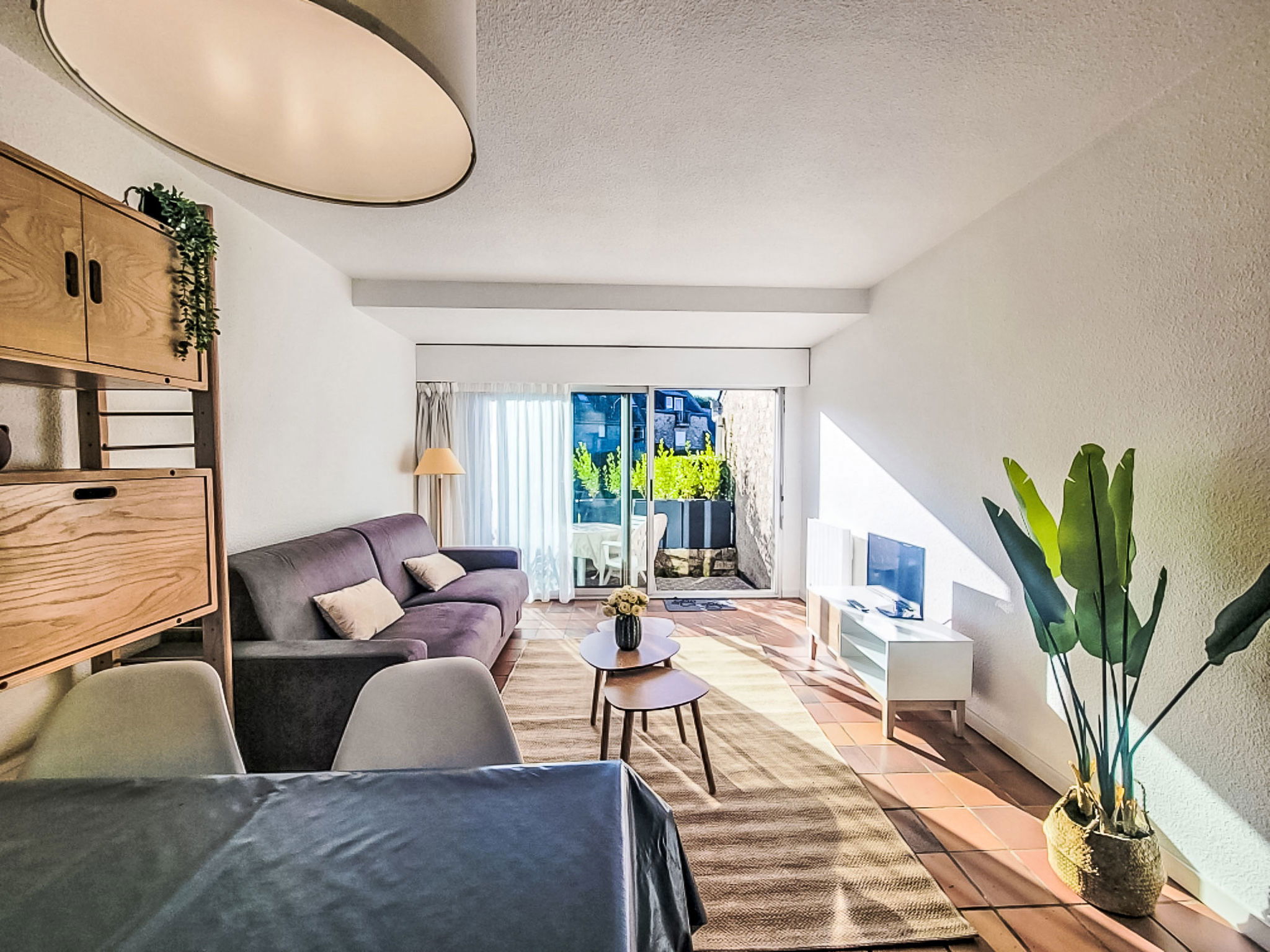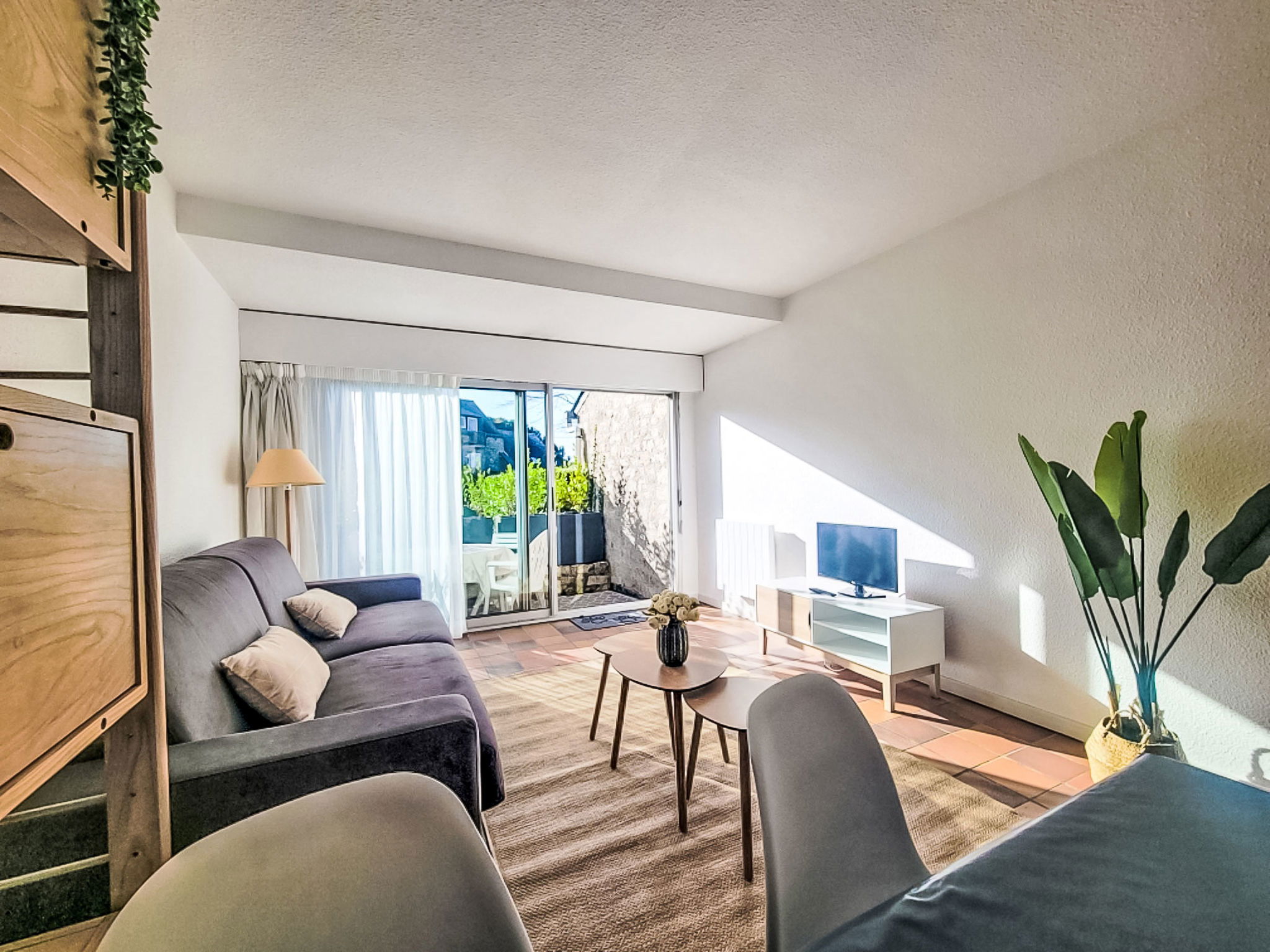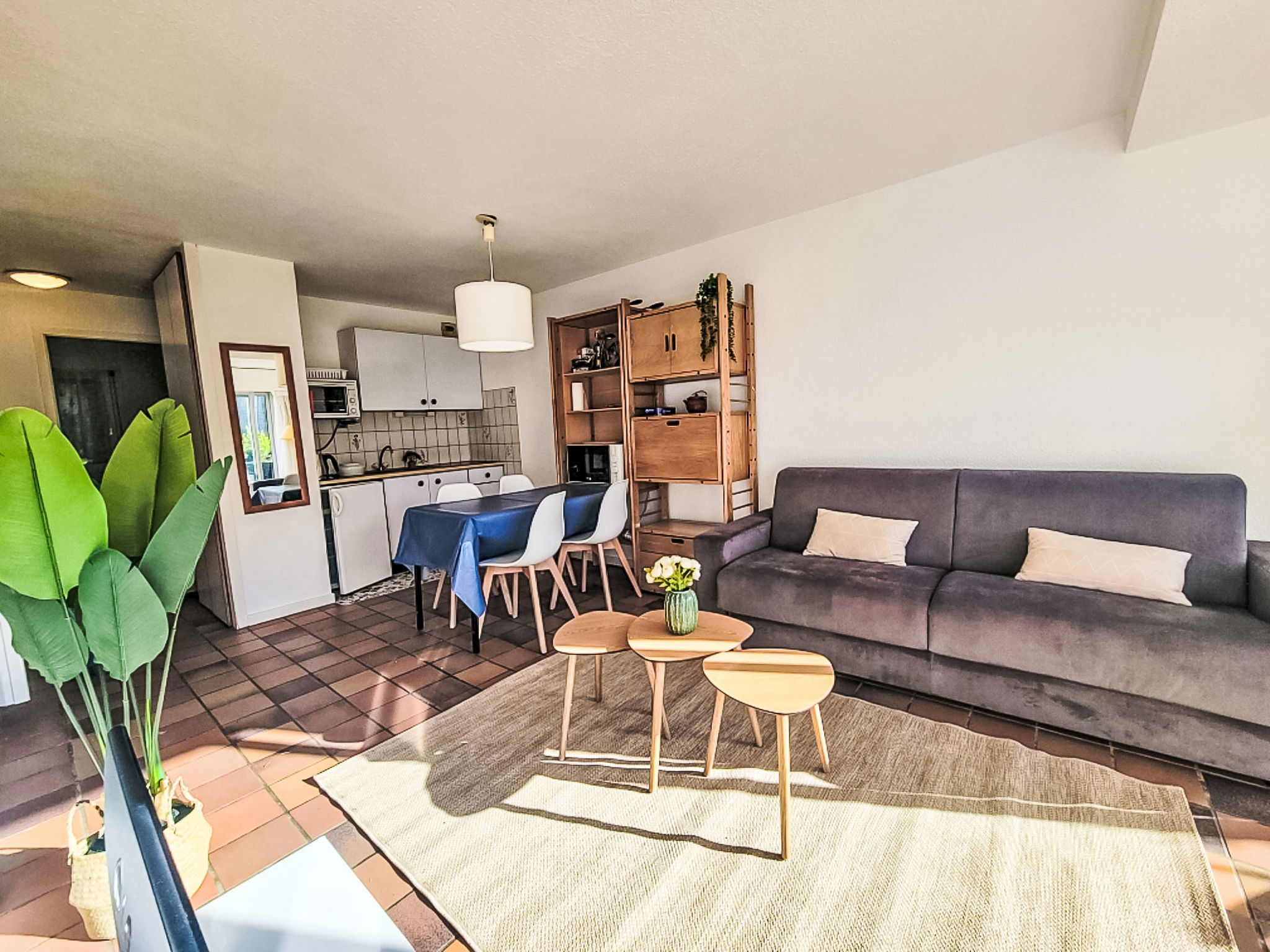 2-room apartment 33 m2, on the ground floor. Comfortable furnishings: living/dining room with 1 double sofabed (1 x 140 cm, length 190 cm), TV (flat screen). Exit to the terrace. 1 small room 5 m2 with 1 x 2 bunk beds (90 cm, length 190 cm). Kitchenette (3 hot plates, mini-oven, toaster, kettle, electric coffee machine). Shower, sep. WC. Terrace 4 m2, west facing position. Terrace furniture. Facilities: hair dryer. Internet (WiFi, extra). Please note: smoke alarm. Offer by a private individual according to Art. 155, IV of CGI. 56034000832B7