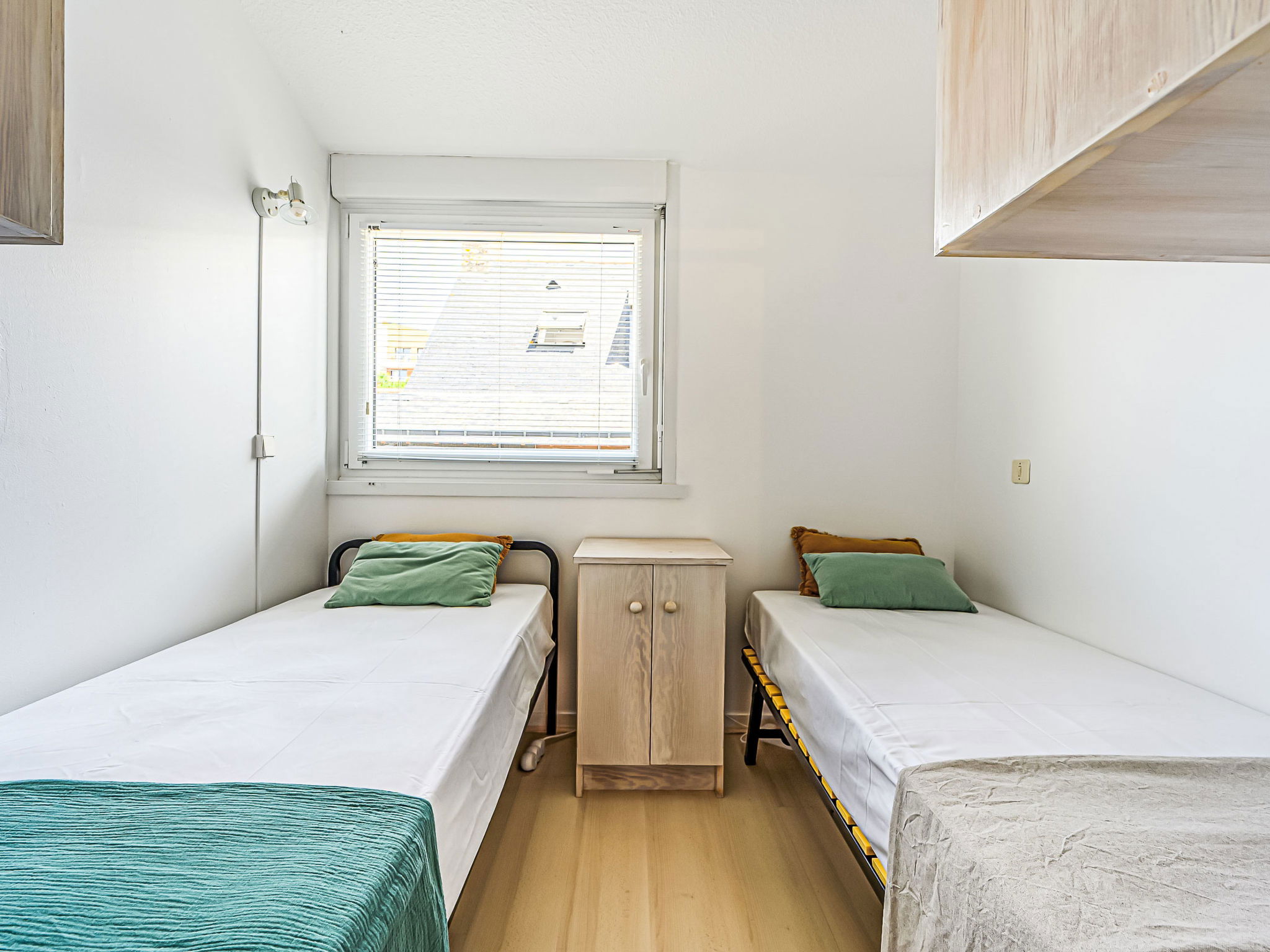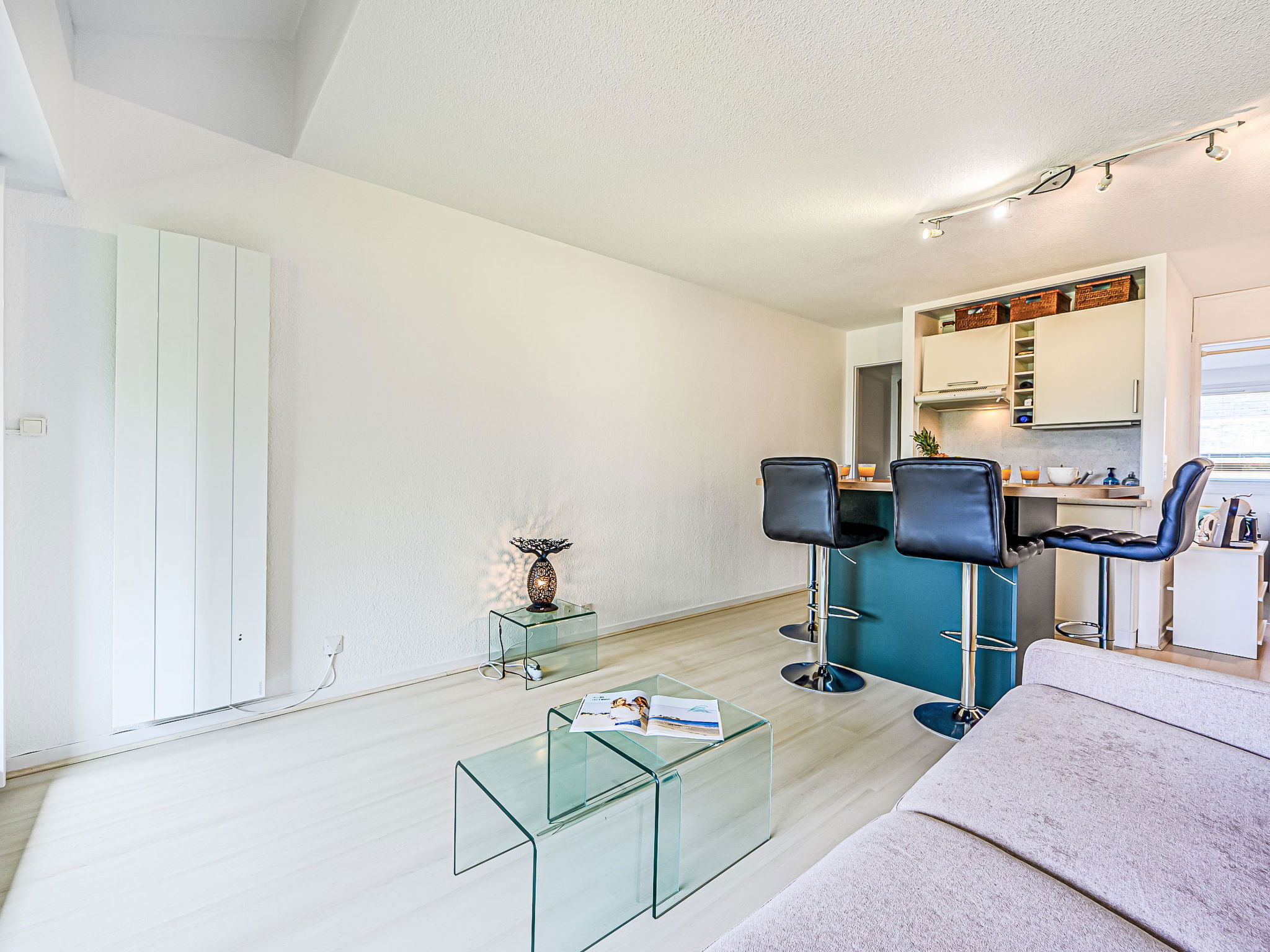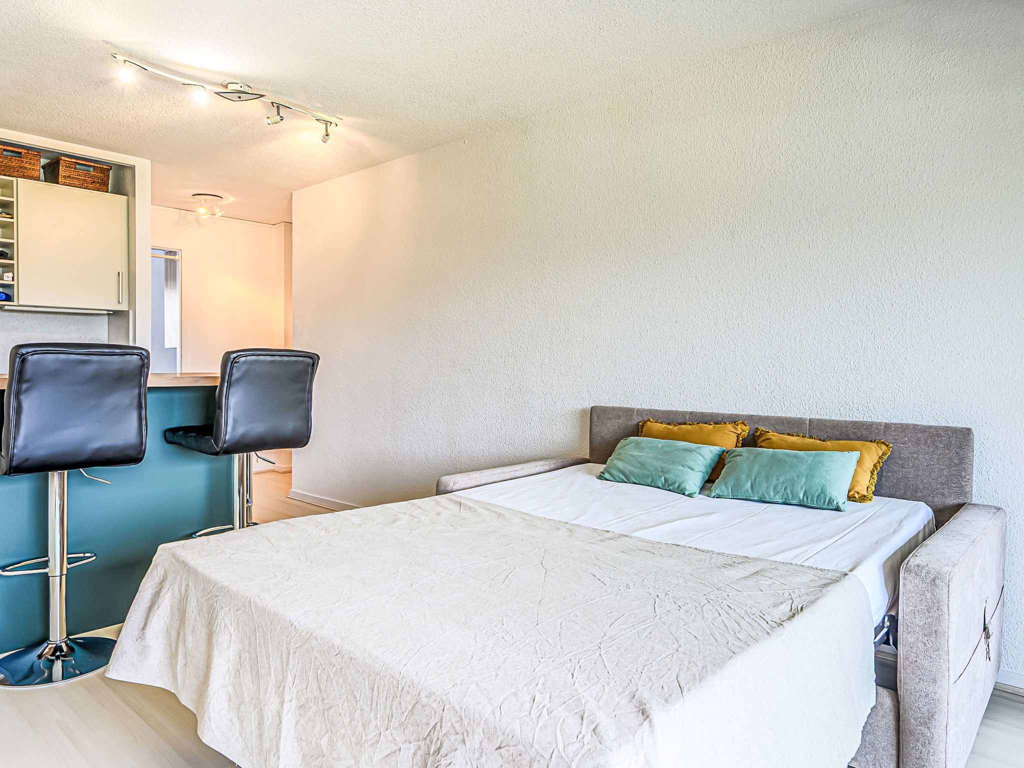 1-room studio 30 m2 on 1st floor. Comfortable furnishings: living/dining room with 1 double sofabed (1 x 140 cm, length 190 cm). Exit to the balcony. Sleeping alcove with 2 beds (80 cm, length 190 cm). Kitchenette (2 ceramic glass hob hotplates, toaster, kettle, electric coffee machine). Shower, sep. WC. Electric heating. Balcony 5 m2, west facing position. Terrace furniture. Facilities: hair dryer. Internet (WiFi, extra). Parking, garage space n 29. Please note: non-smokers only. Smoke alarm. Offer by a private individual according to Art. 155, IV of CGI. 56034000639D7