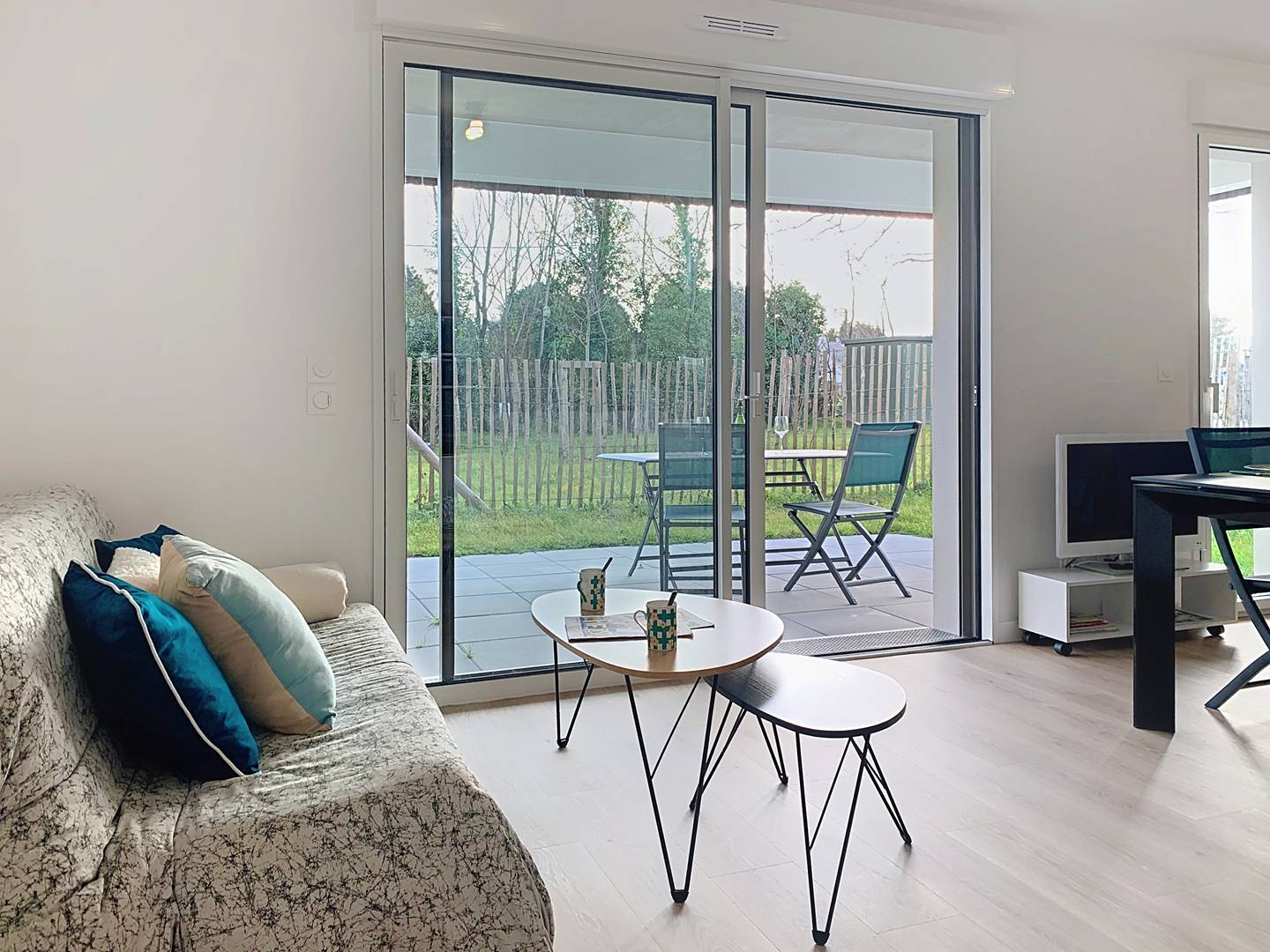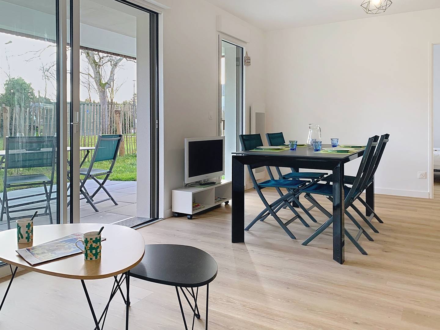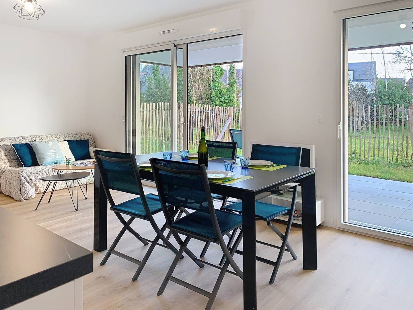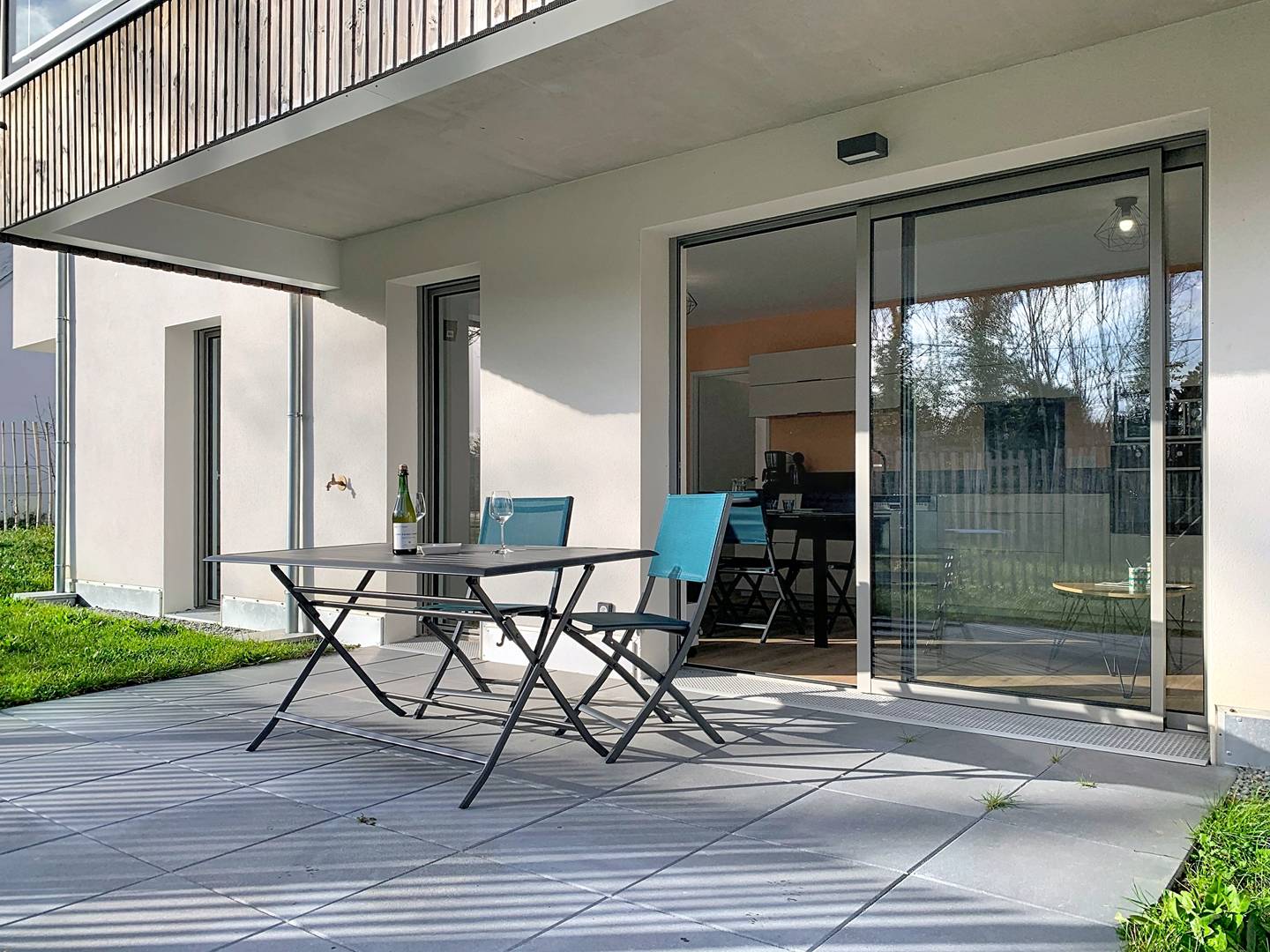 Ideally located halfway between the beach and the town centre of Carnac, this lovely 2-bedroom apartment sleeps 4 (approx. 58 sqm). It features a large terrace and a private garden, and is set within the modern PASSAGE CÉSARINE residence (Building A, ground floor, door 4):