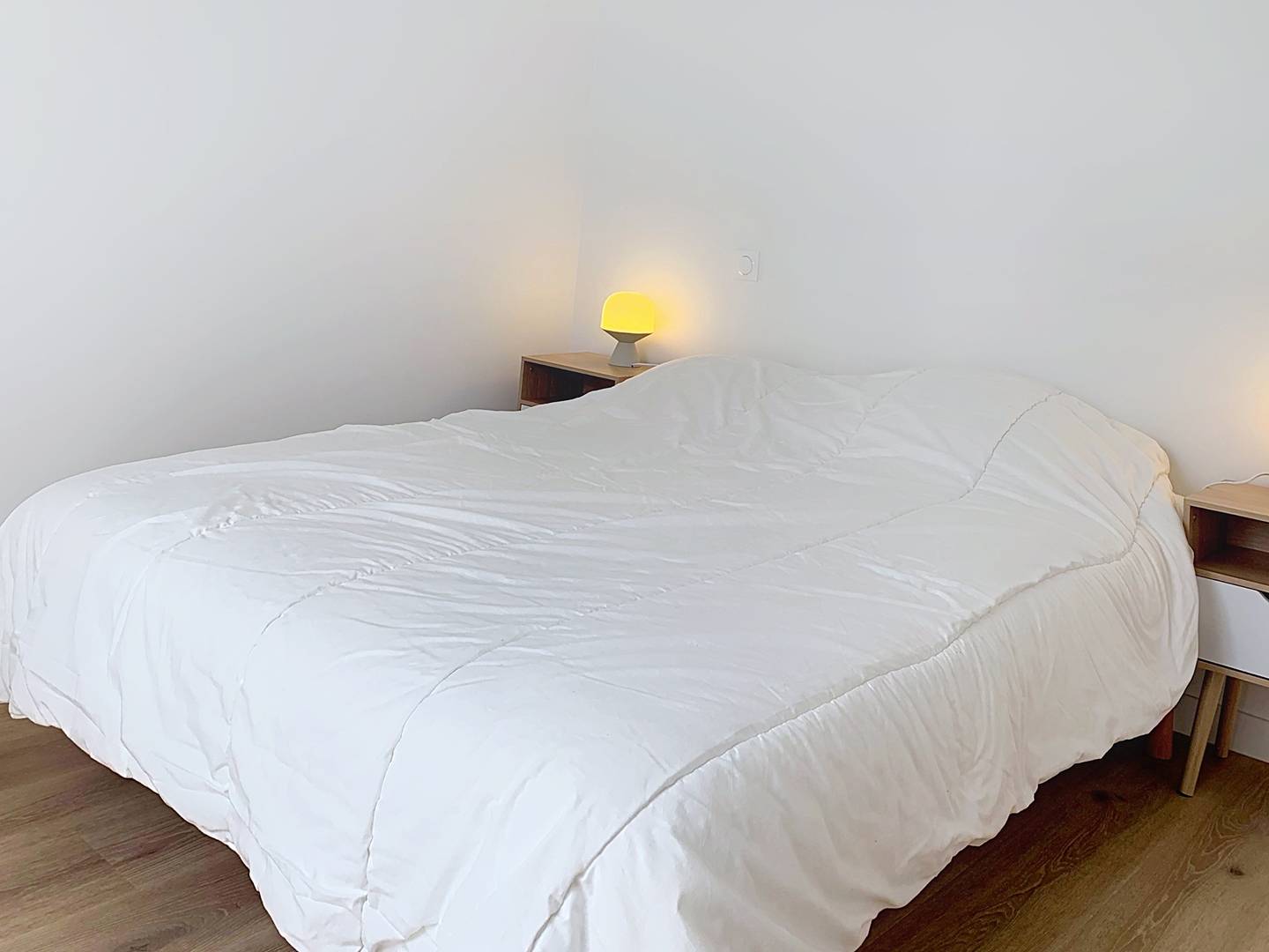 - 1 bedroom with a double bed (140 cm, duvet) and direct access to the garden