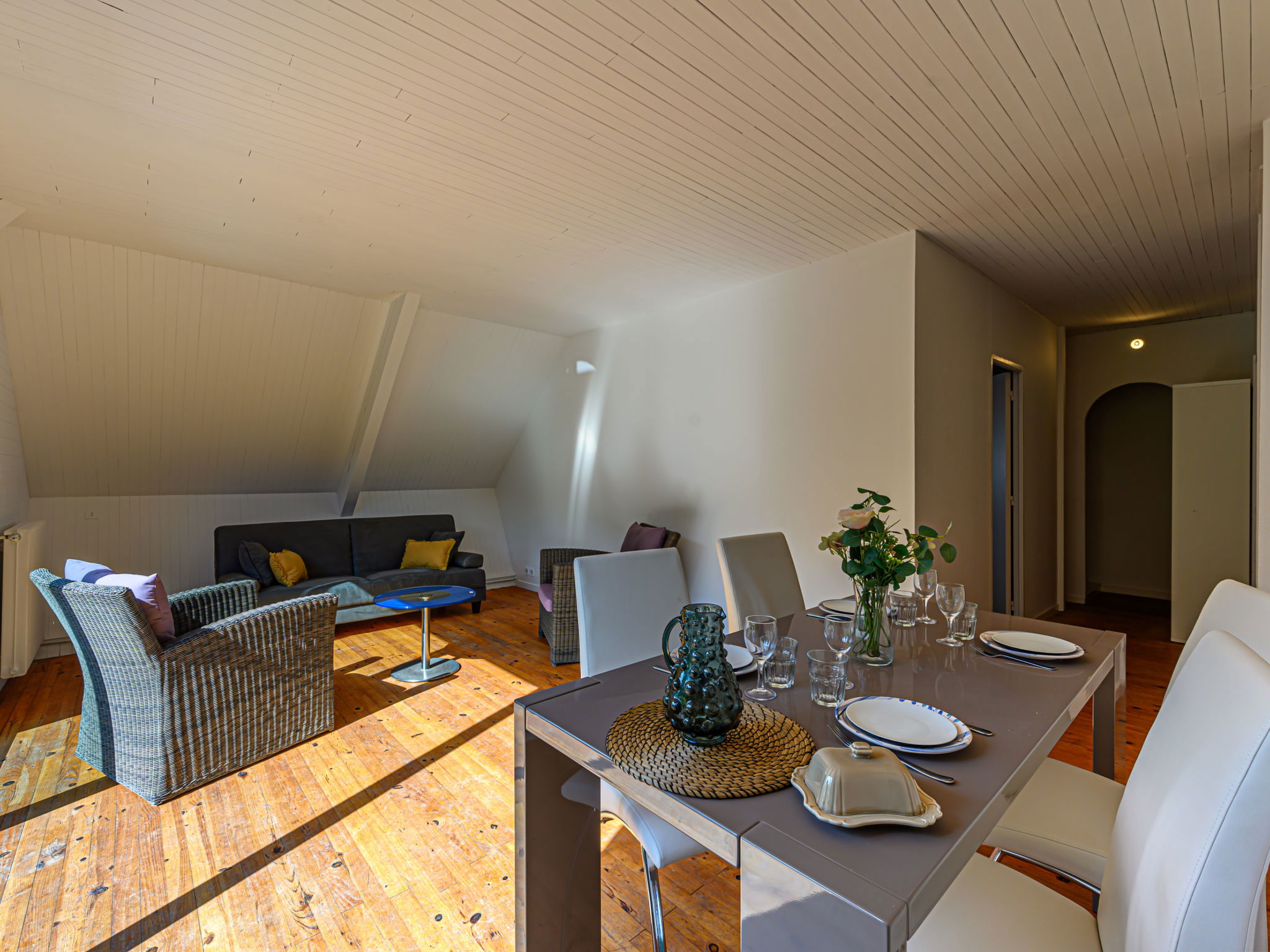 "Pyramide", 2-room apartment 45 m2, on the ground floor. Partly renovated in 2024, comfortable furnishings: living/dining room with 1 double sofabed (1 x 140 cm, length 190 cm), TV (flat screen). Exit to the terrace. 1 room with 2 beds (90 cm, length 200 cm). Kitchen (oven, dishwasher, 4 ceramic glass hob hotplates, toaster, kettle, microwave, electric coffee machine). Shower/WC. Gas heating. Terrace 30 m2, west facing position. Terrace furniture. Facilities: washing machine, hair dryer. Internet (WiFi, free). Please note: non-smokers only. Smoke alarm. Offer by a private individual according to Art. 155, IV of CGI. 56233000139HP