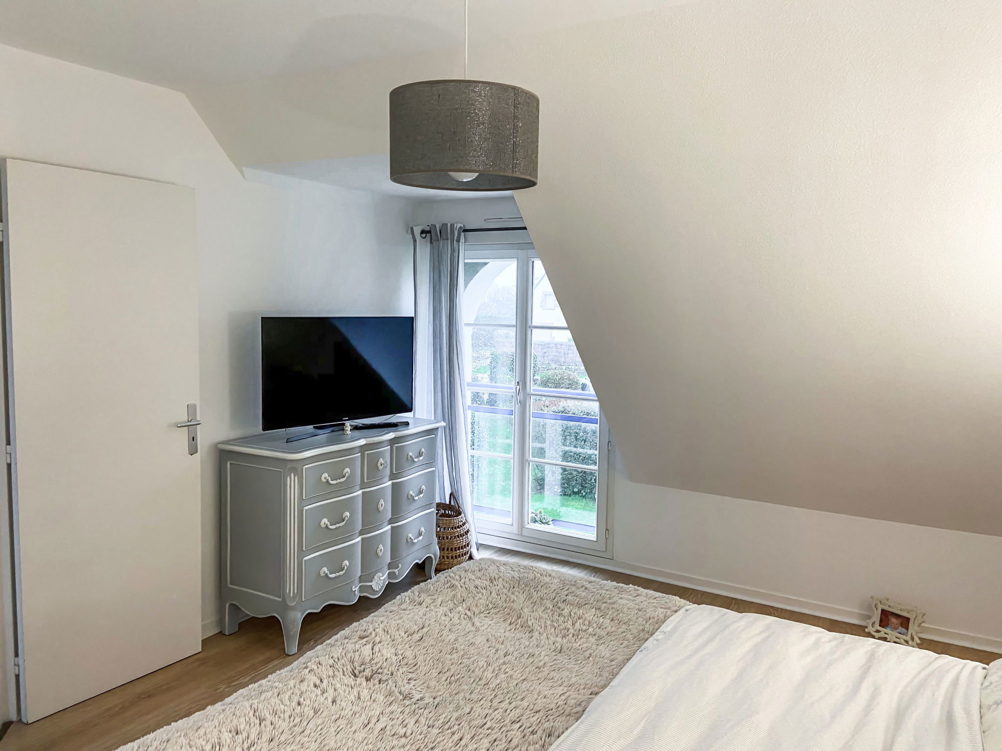 4-room house 90 m2 on 2 levels. Comfortable and beautiful furnishings: living/dining room with TV (flat screen). Exit to the garden. Open kitchen (oven, dishwasher, 4 ceramic glass hob hotplates, toaster, kettle, freezer, electric coffee machine, Capsules for coffee machine (Nespresso) extra). Shower/WC. Upper floor: 1 room with 1 french bed (1 x 160 cm, length 190 cm). 1 room with 2 beds (90 cm, length 190 cm). 1 room with 2 beds (80 cm, length 190 cm). Shower/WC. Electric heating. Terrace 30 m2, south facing position, garden 250 m2. Terrace furniture, barbecue, deck chairs (2). Facilities: washing machine, dryer, iron, hair dryer. Internet (WiFi, free). Parking at the house. Please note: non-smokers only. Smoke alarm. Offer by a private individual according to Art. 155, IV of CGI. 56034000615FE