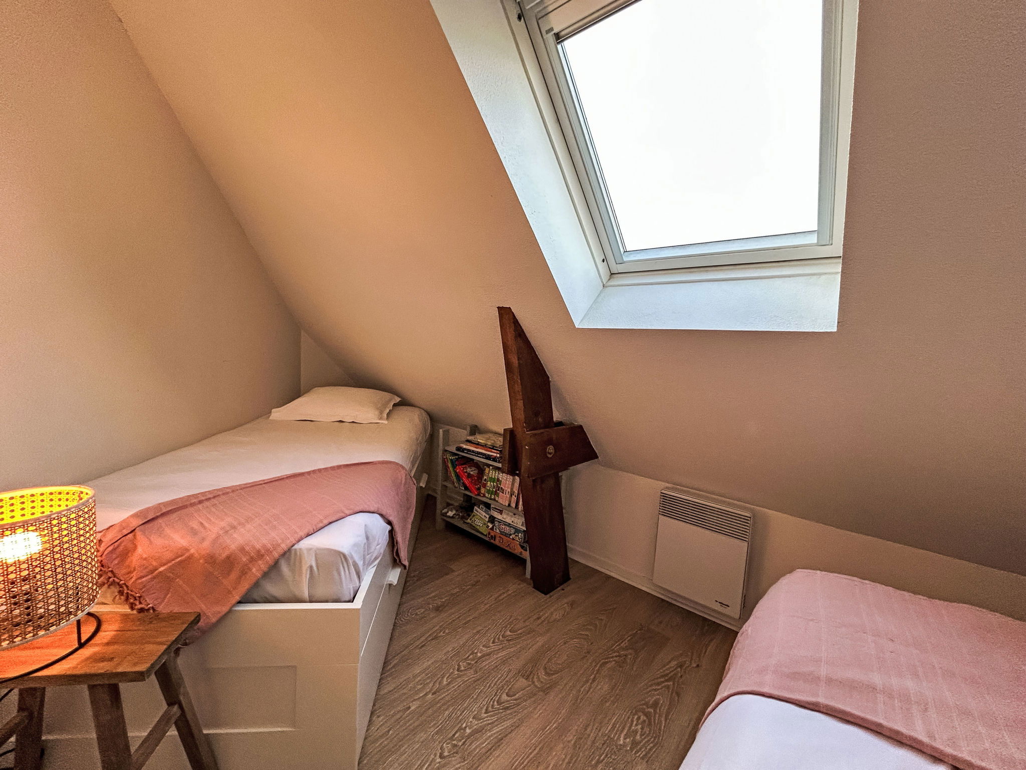 Single-family house "Le Clos St Colomban", 2 storeys. In the hamlet Clos St Colomban, on the outskirts, 1.2 km from the centre of Carnac Plage, 1.1 km from the sea, 1.1 km from the beach. Private: well-kept garden 250 m2, parking on the premises. Shop 1.4 km, supermarket 650 m, restaurant 1.4 km, bakery 900 m, 15 minute walk to the centre, railway station "Auray" 12 km, sandy beach "Plage de Légenèse & St Colomban" 1.2 km, diving center 6 km, indoor swimming pool 1.3 km, thermal baths "Thalassothérapie Thalazur Carnac" 1.3 km. Golf course (18 hole) 16 km, surf school 6 km, sailing school 1.2 km, tennis 900 m. Nearby attractions: Les alignements de Carnac 1.2 km, La Trinité sur Mer 6 km, Quiberon et la presqu'ile 15 km, Belle ile en Mer, Houat, Hoedic, Vannes 35 km, Lorient 65 km. Hiking paths: Le Golfe du Morbihan.