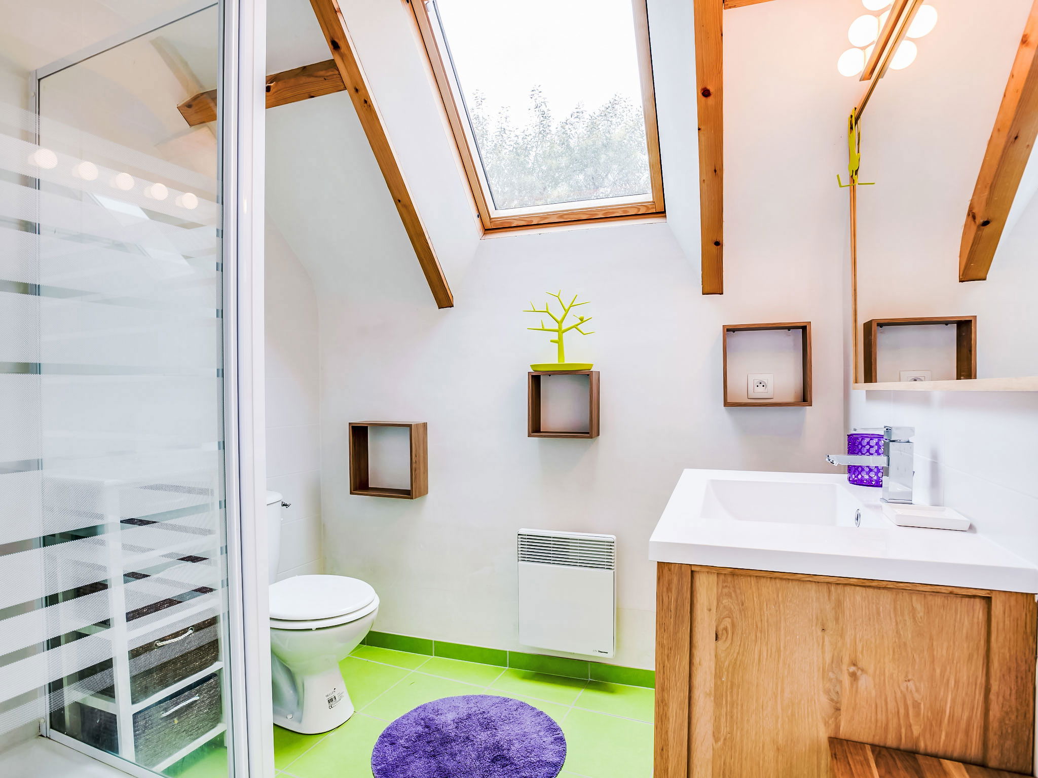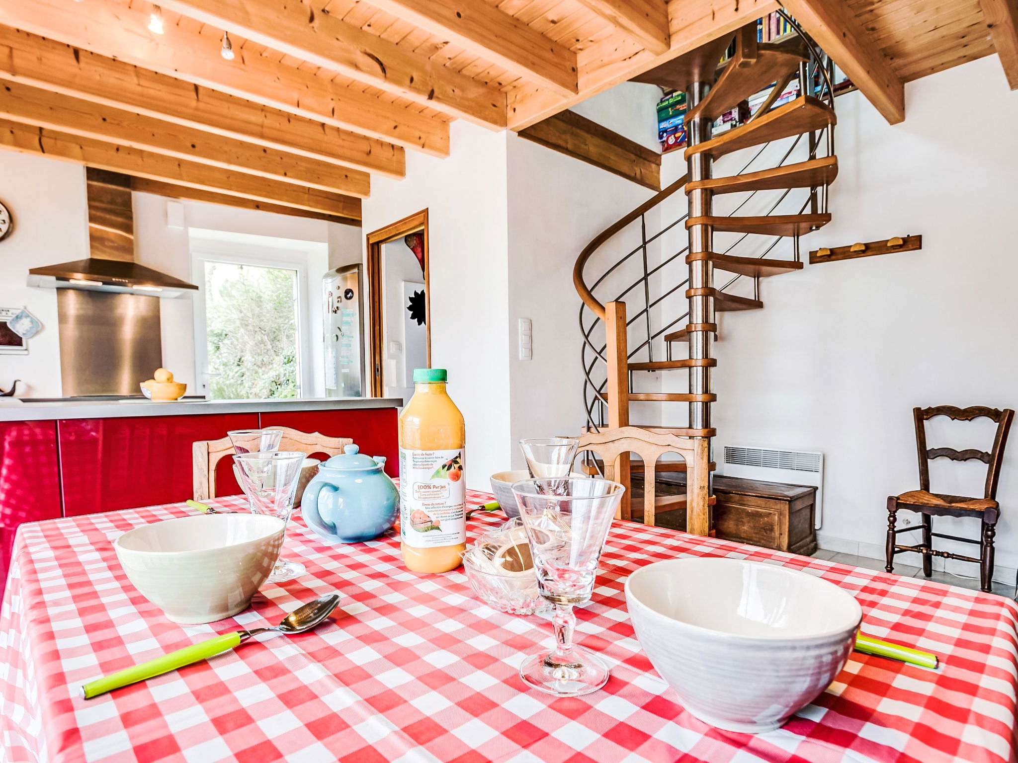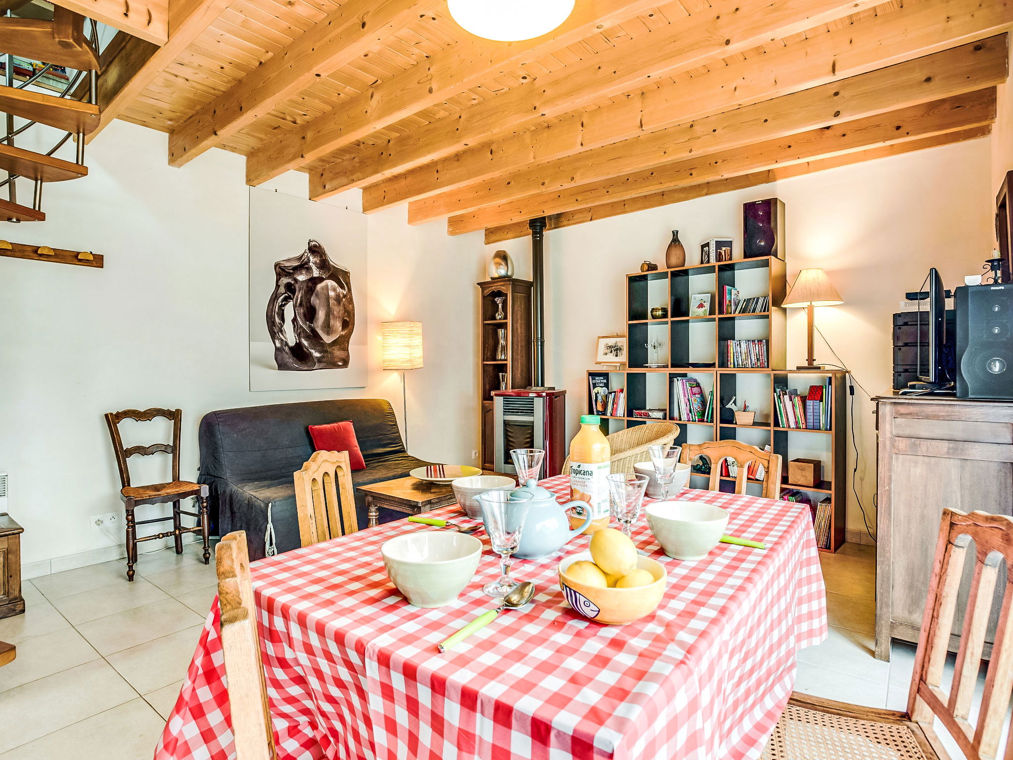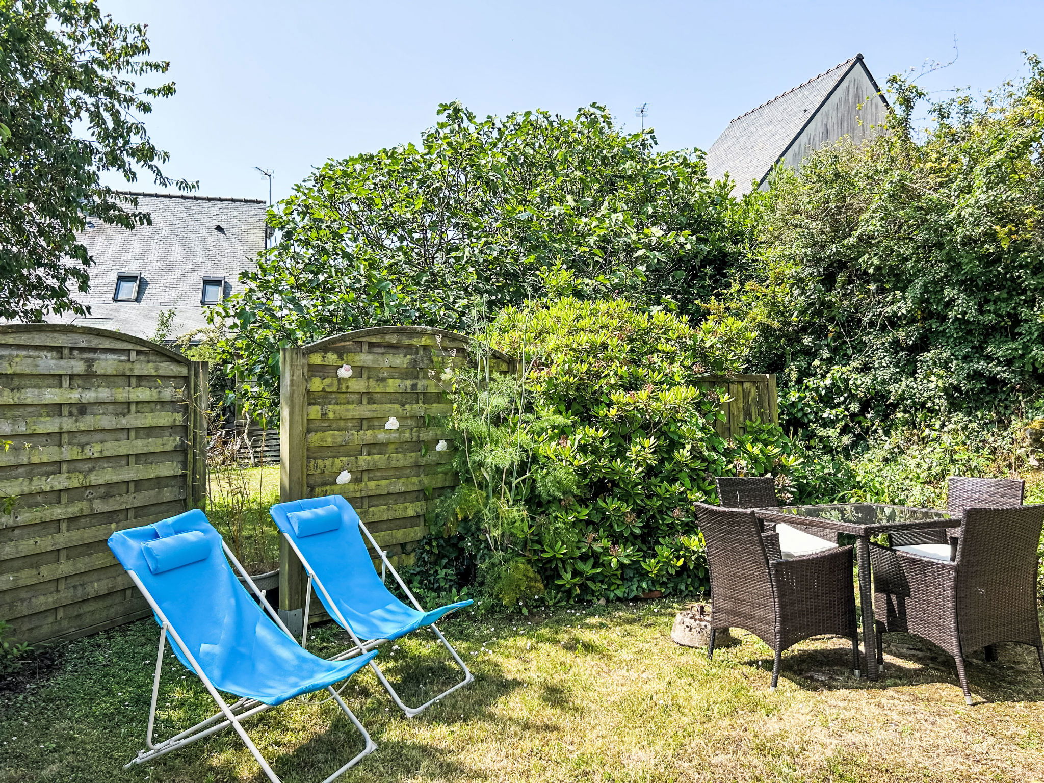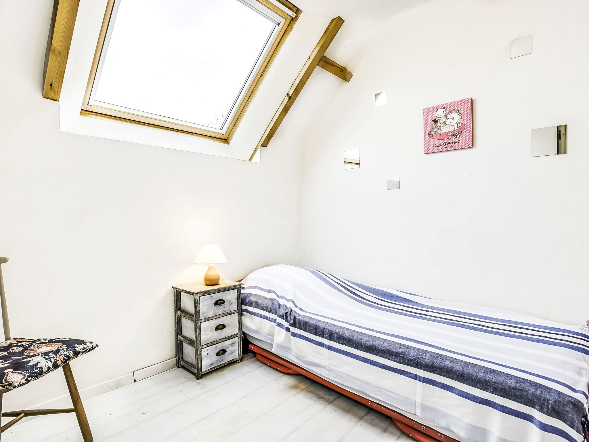 3-room house 50 m2 on 2 levels. Object suitable for 2 adults + 2 children. Living/dining room with hi-fi system and wood-burning stove. Exit to the garden. Open kitchen (3 hot plates, dishwasher, freezer, electric coffee machine, combination microwave). Upper floor: (spiral staircase), 1 room with 1 french bed (140 cm, length 190 cm), TV and DVD. 1 children's room with sloping ceilings with 1 pull-out bed (2 pers. 2 x 90 cm, length 190 cm). Shower/WC. Terrace furniture, barbecue, deck chairs (2). Facilities: washing machine, children's high chair, baby cot. Internet (WiFi, free). Please note: smoke alarm. 56034000805A8