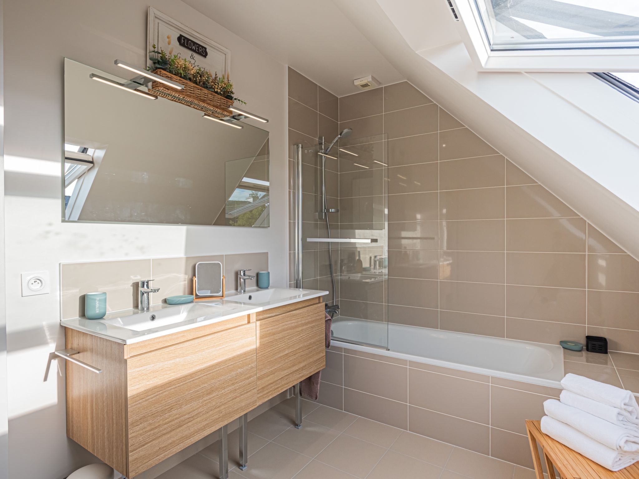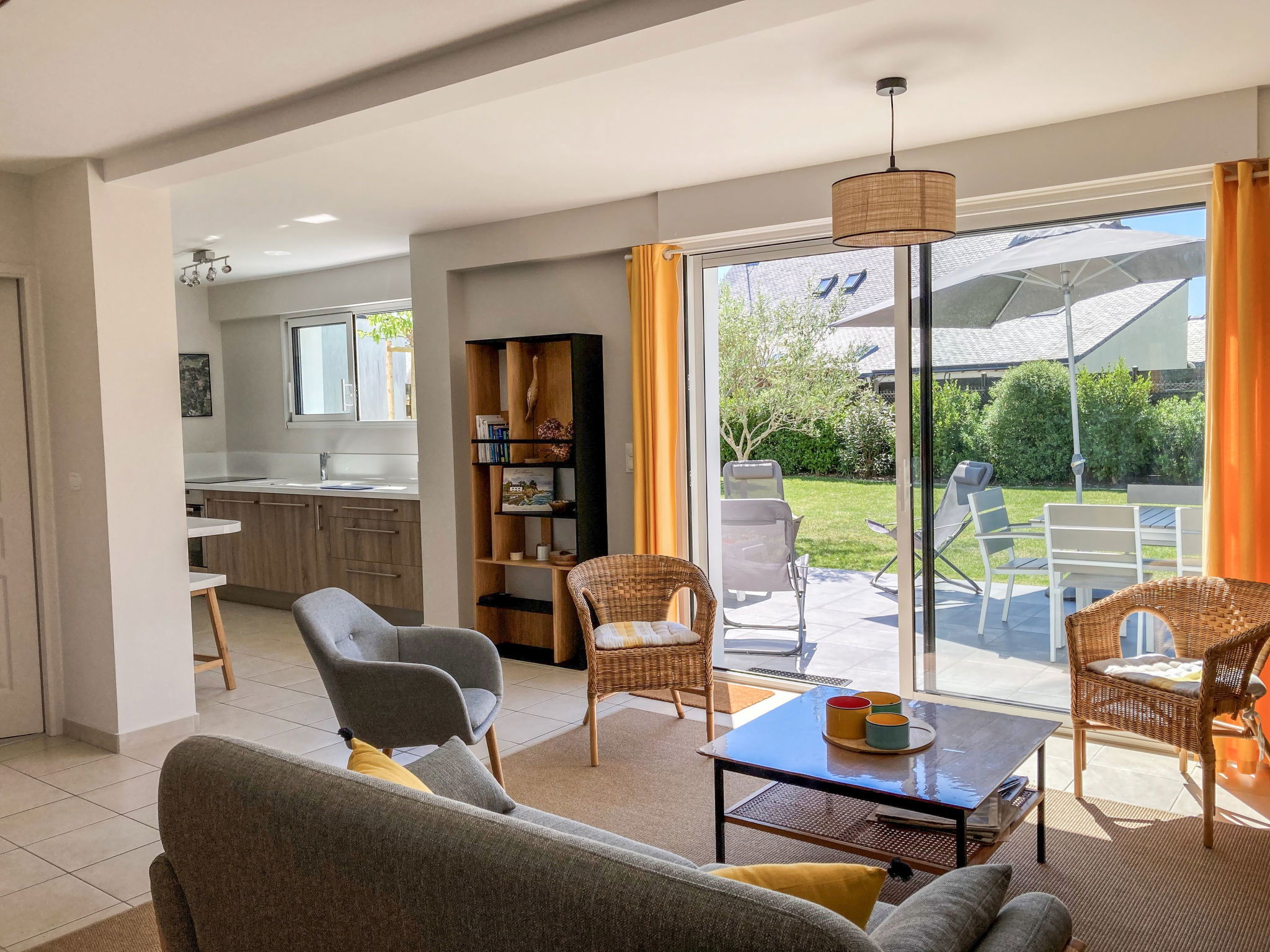 St Philibert 8 km from Carnac: Single-family house "Le Ponant", 2 storeys, renovated in 2020. In the resort 100 m from the centre of Saint Philibert, in the residential district, 800 m from the sea, 1.9 km from the beach. Private: well-kept garden 400 m2 (fenced). In the house: storage room for bicycles. Shop, grocery 100 m, supermarket 2.5 km, bakery 100 m, 2 minute walk to the centre, sandy beach "Plage de Men er Belleg" 1.9 km, diving center 4 km, thermal baths "Thalassothérapie Thalazur Carnac" 8 km. Sports harbour 4 km, golf course (18 hole) 15 km, sailing school 1.9 km. Nearby attractions: La Trinité Sur Mer 4 km, Carnac et ses alignements 8 km, Presqu'île de Quiberon 15 km, Vannes 30 km, Lorient 50 km, Belle ile en Mer, Houat, Hoedic. Hiking paths: Le Golfe du Morbihan.