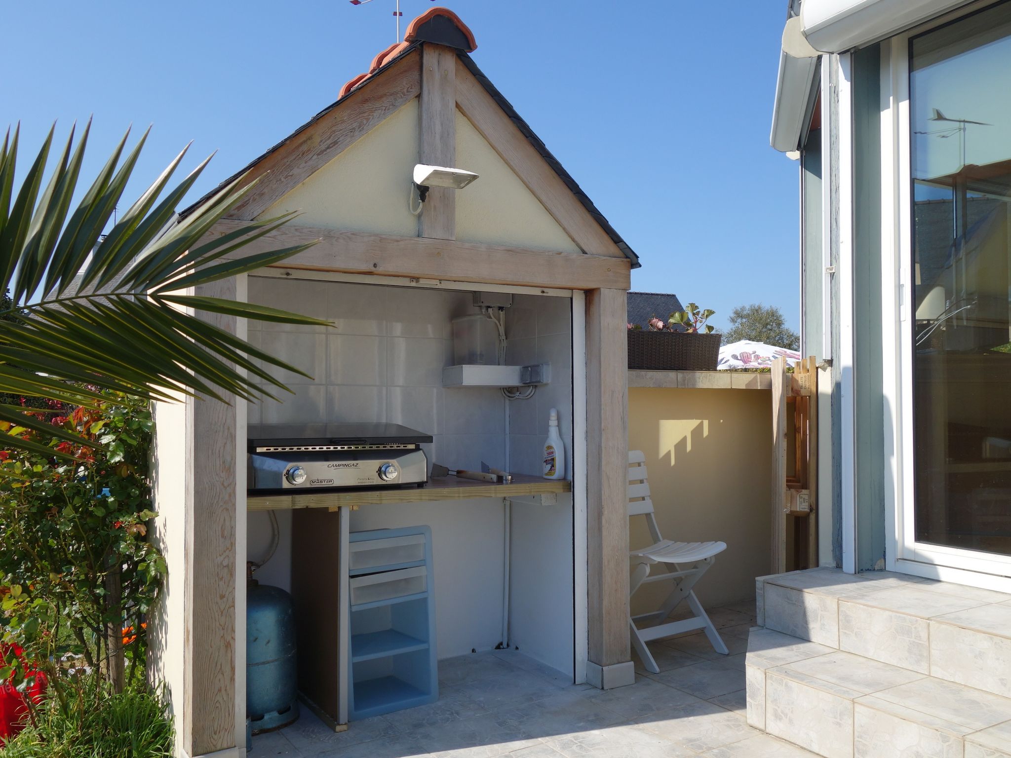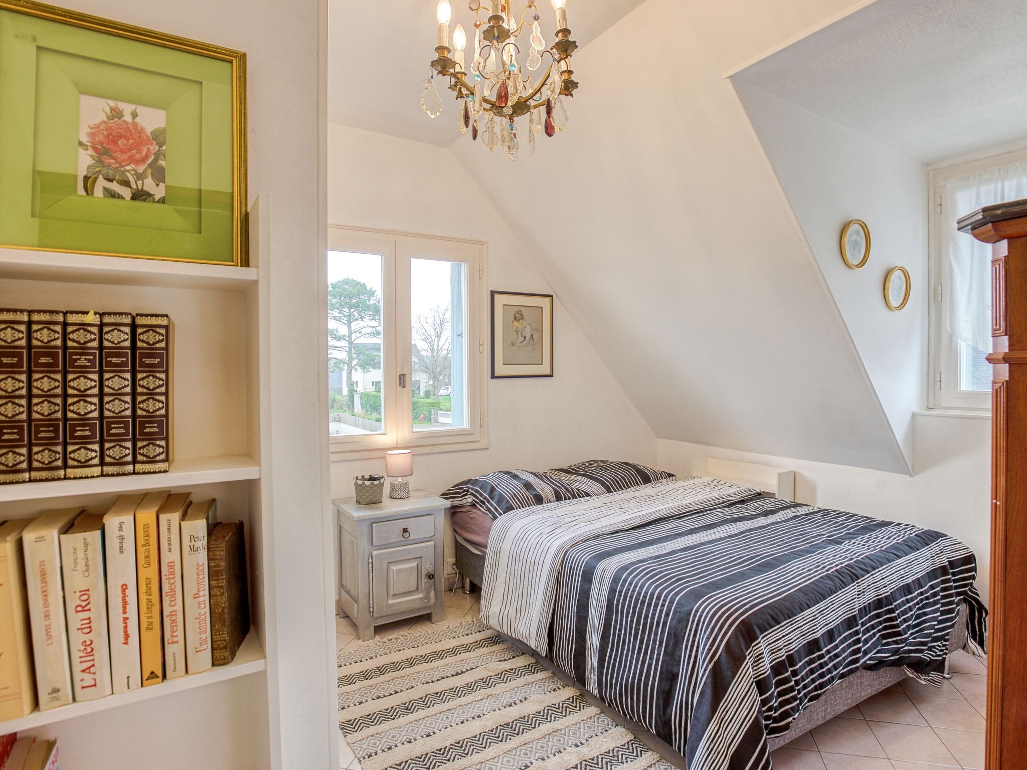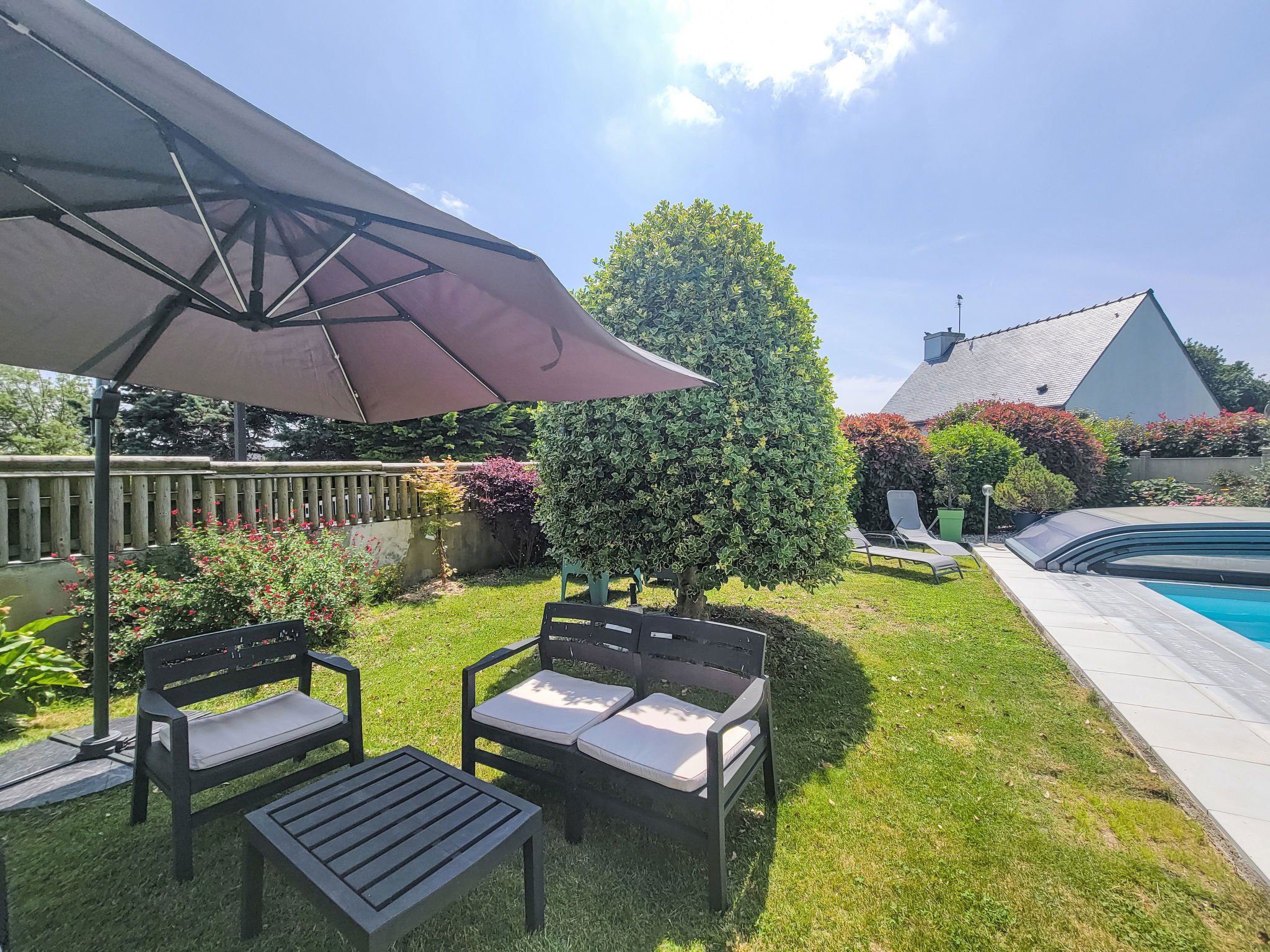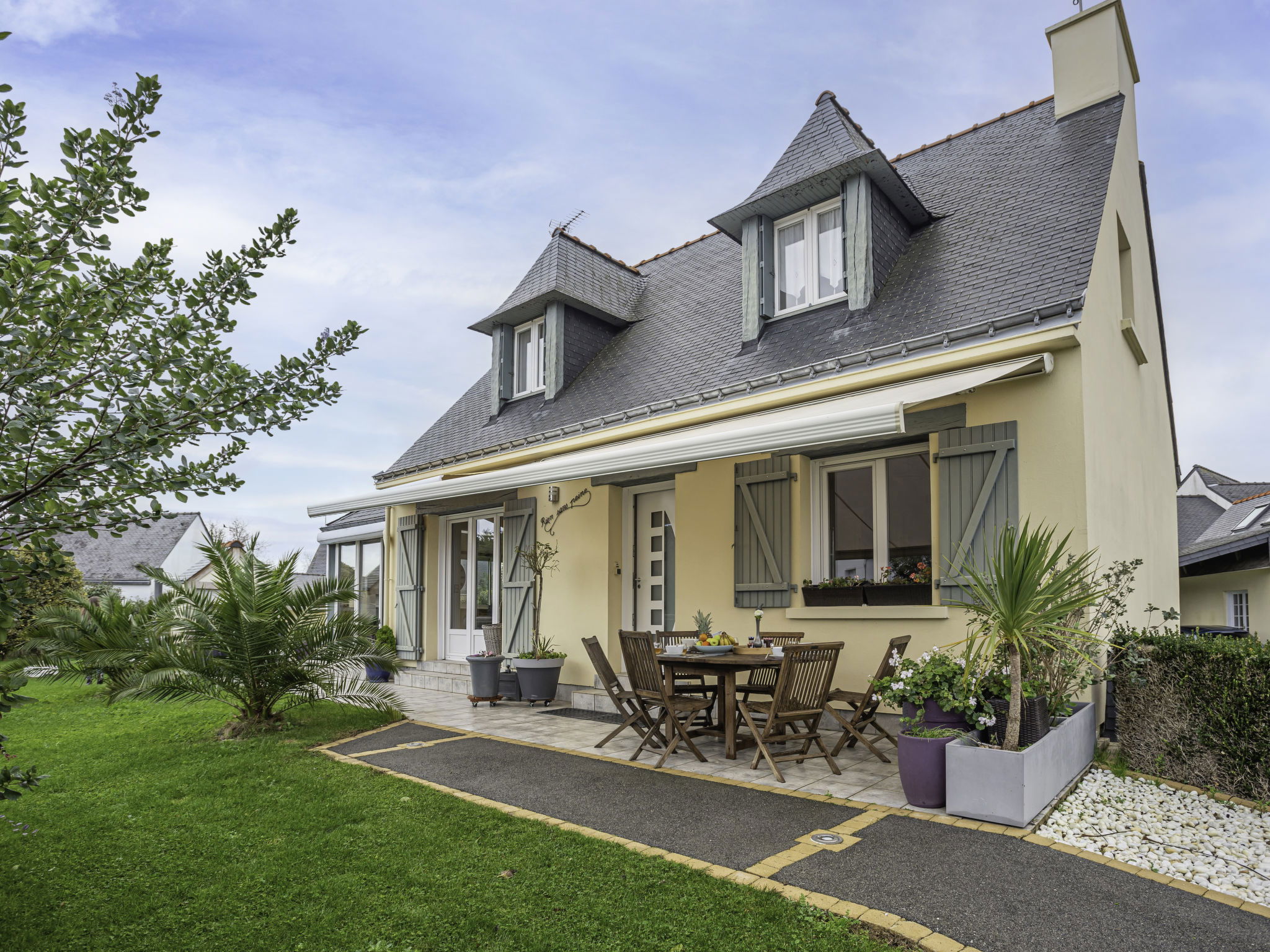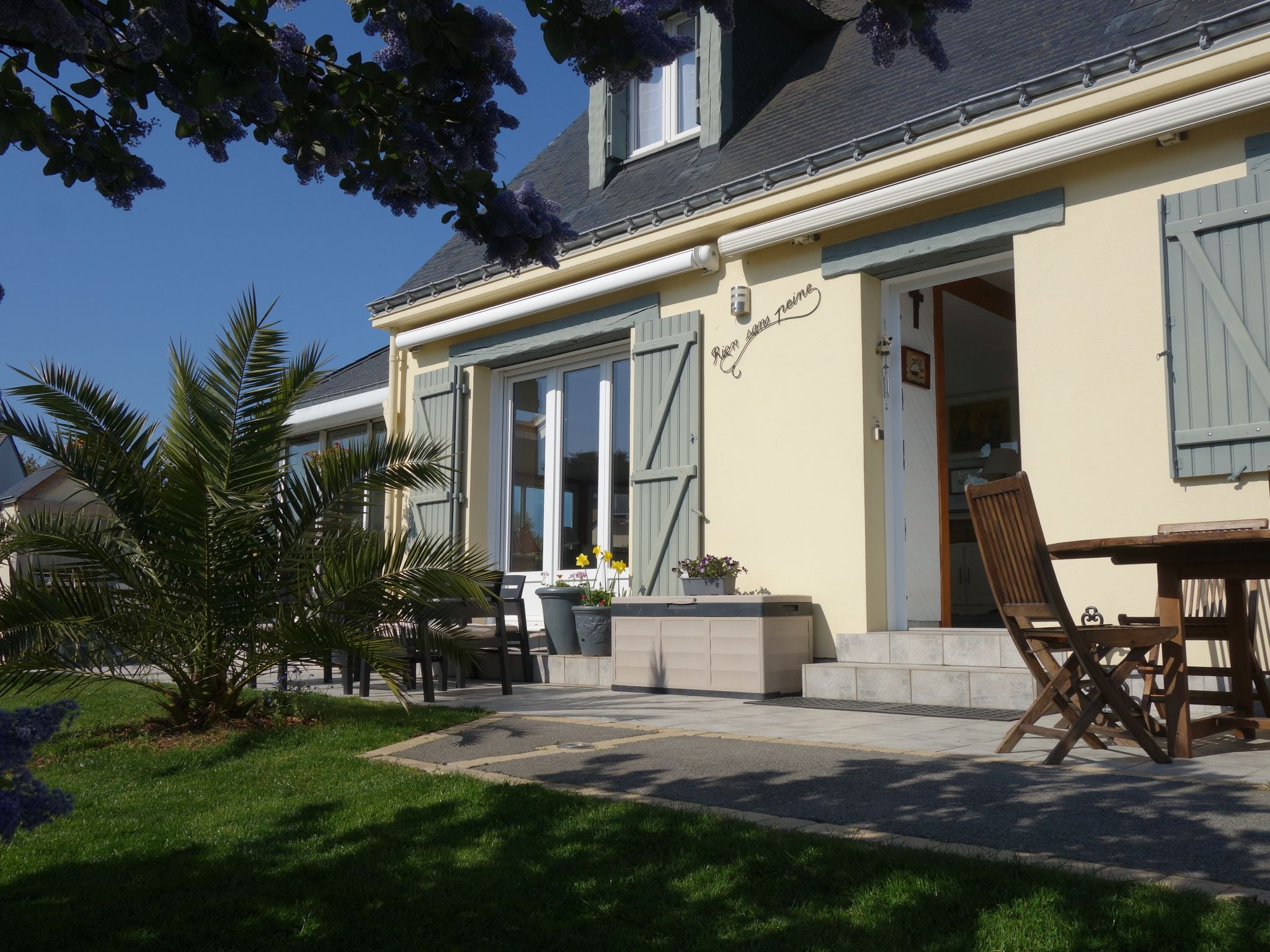 Saint Philibert 8 km from Carnac: Large single-family house "Phil'blue". In the centre of Saint Philibert, 400 m from the sea, 1 km from the beach. Private: well-kept garden 1'000 m2 (fenced), indoor pool angular, heated, secured (8 x 4 m, depth 140 - 160 cm, seasonal availability: 01.Apr. - 19.Sep.). Outdoor shower. In the house: storage room for bicycles. Grocery 400 m, supermarket 2 km, restaurant, bakery 400 m, sandy beach "Men er Belleg ou Kernevest" 1.6 km, thermal baths "Thalasothérapie Thalazur" 8 km. Golf course (18 hole) 12 km, sailing school 1.6 km, riding stable 4 km. Nearby attractions: La Trinité Sur Mer 4 km, Carnac et ses alignements 8 km, Presqu'île de Quiberon 15 km, Vannes 35 km, Plage de Locmariaquer par voie cyclable 7 km, Belle ile en Mer, Houat, Hoedic. Hiking paths: Le Golfe du Morbihan.