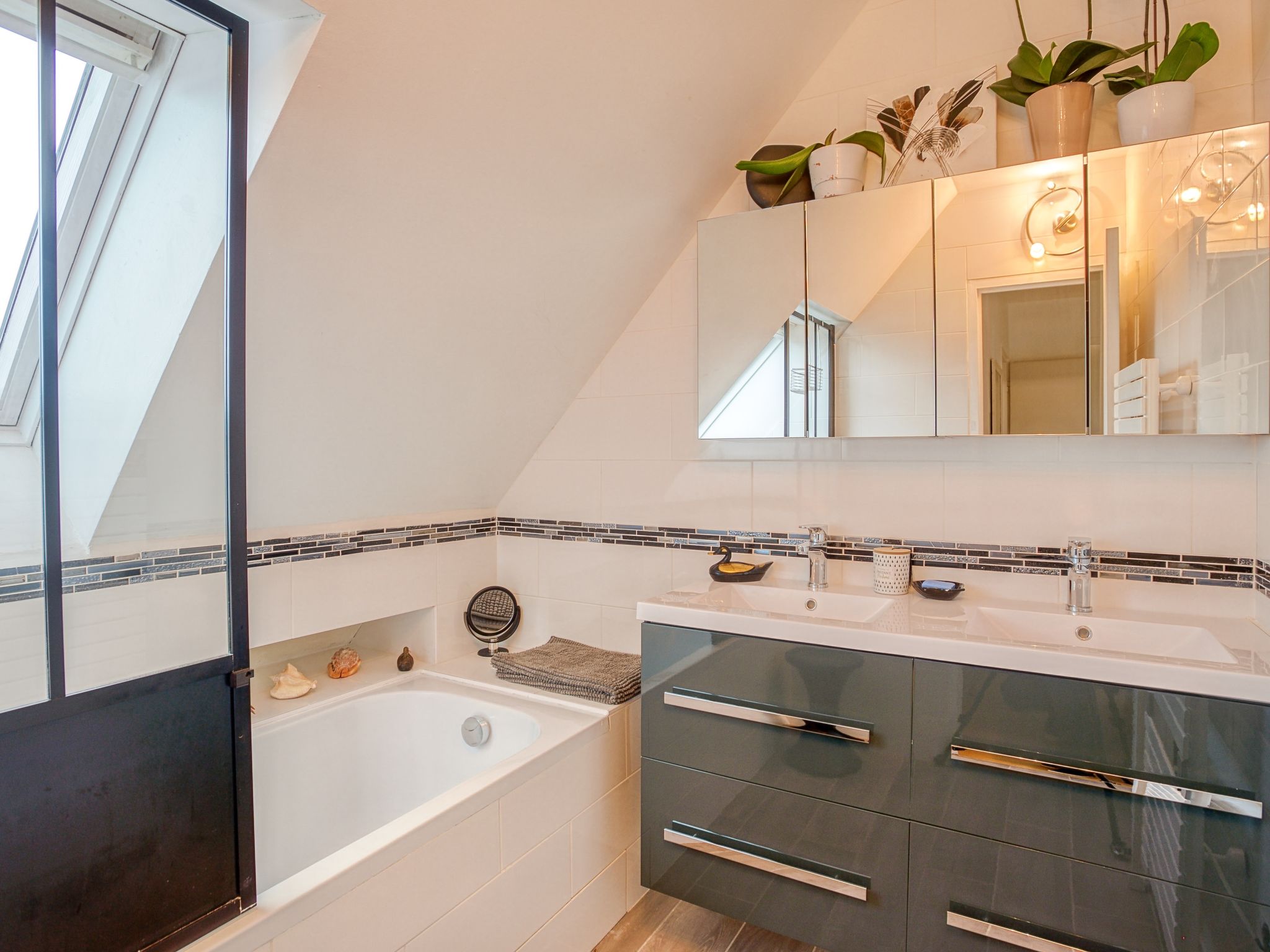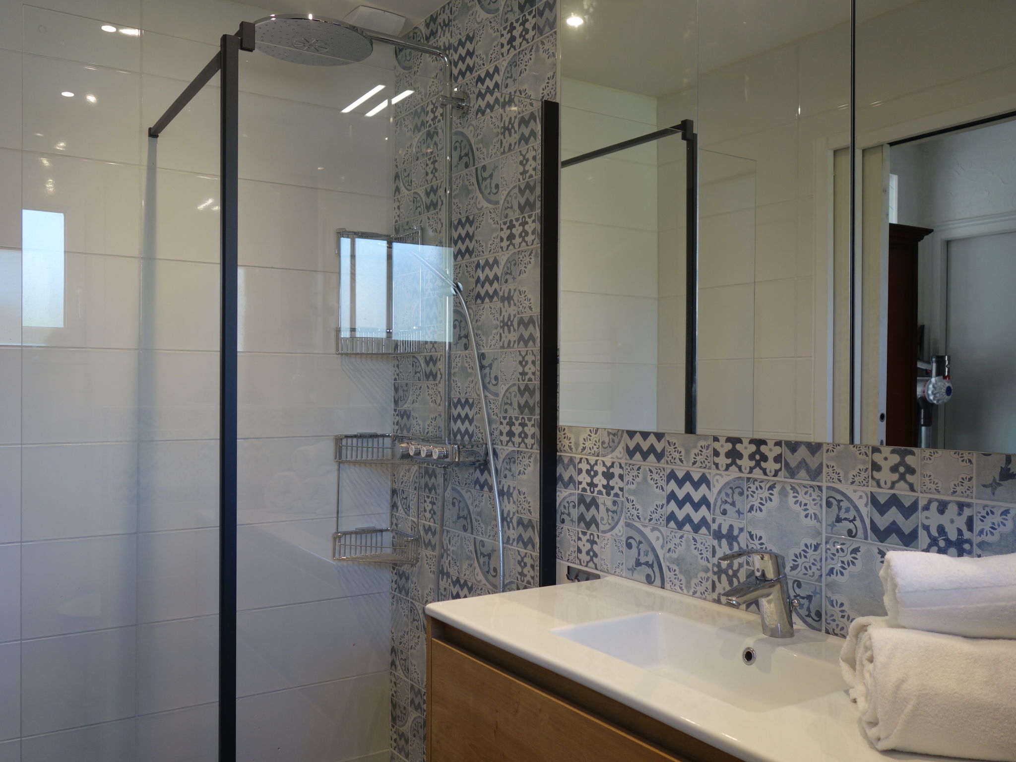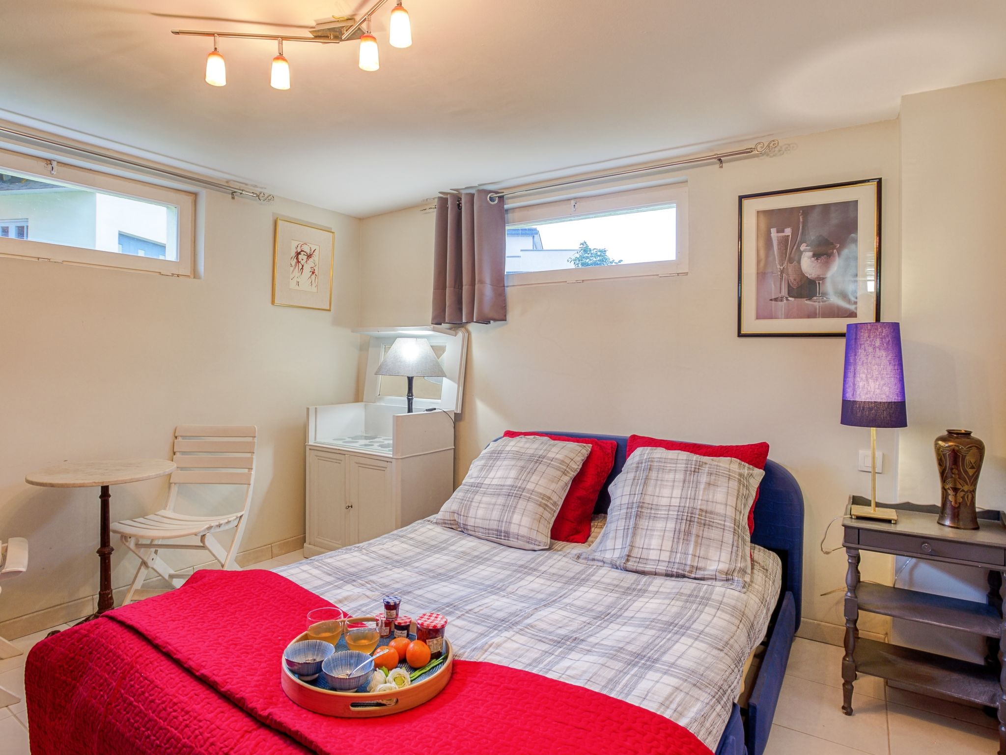 5-room house 150 m2 on 3 levels. Comfortable and beautiful furnishings: large living/dining room with TV (flat screen). Exit to the garden, to the terrace. Kitchen (oven, dishwasher, 4 induction hot plates, toaster, kettle, microwave, freezer, electric coffee machine). Shower, sep. WC. On the lower ground floor: 1 room with 2 beds (90 cm, length 190 cm), shower/WC and TV (flat screen). Exit to the garden. Upper floor: 1 room with 1 french bed (1 x 140 cm, length 200 cm), TV (flat screen). 2 rooms, each room with 1 french bed (1 x 160 cm, length 200 cm), TV (flat screen). Bathroom, sep. WC. Terrace 40 m2. Terrace furniture, barbecue, deck chairs (6). View of the swimming pool and the garden. Facilities: washing machine, safe, iron, children's high chair, baby cot for up to 2 year olds, hair dryer. Internet (WiFi, free). Reserved parking (fenced 2 cars), garage. Please note: smoke alarm. Garage under the shelter.