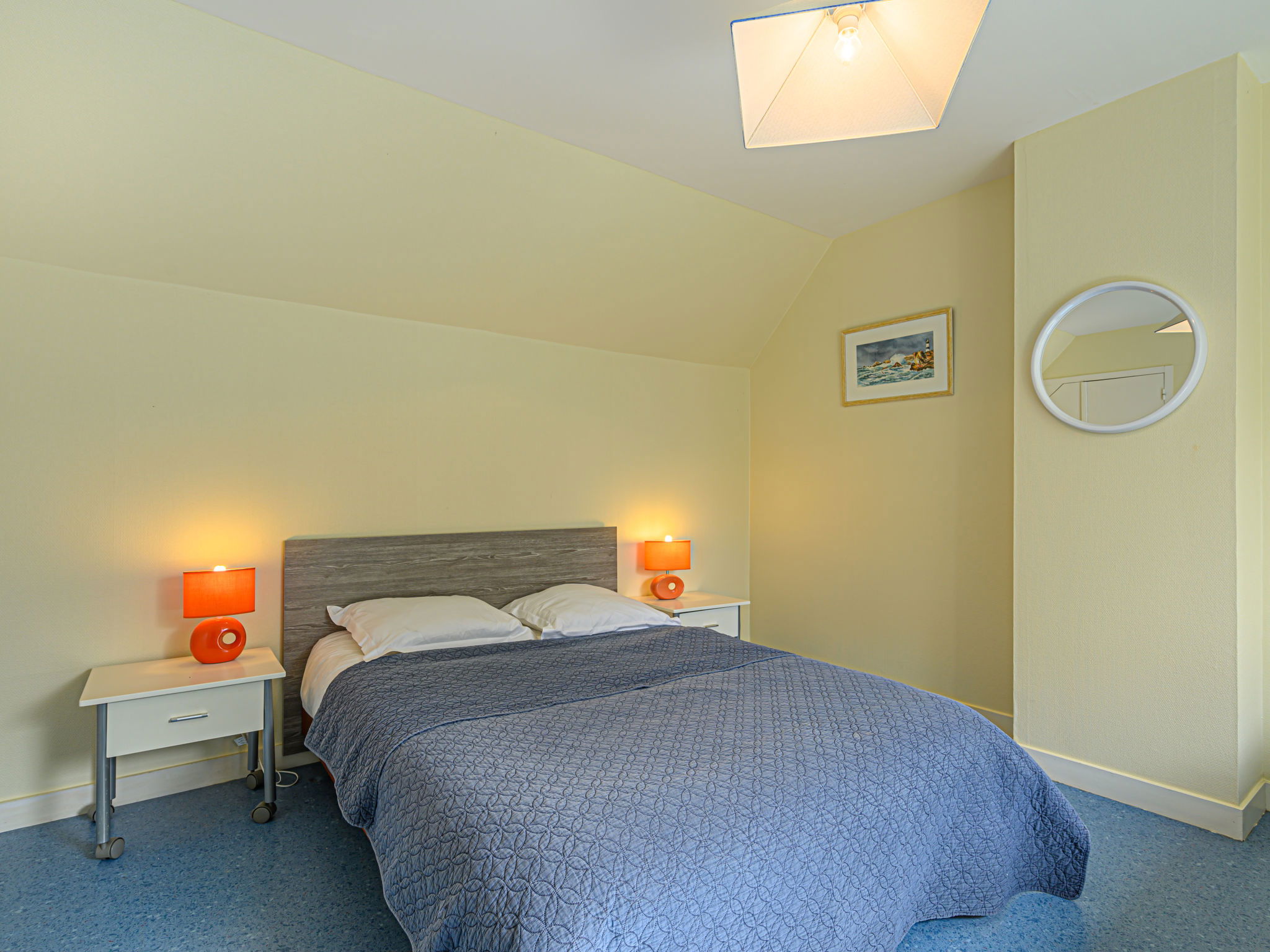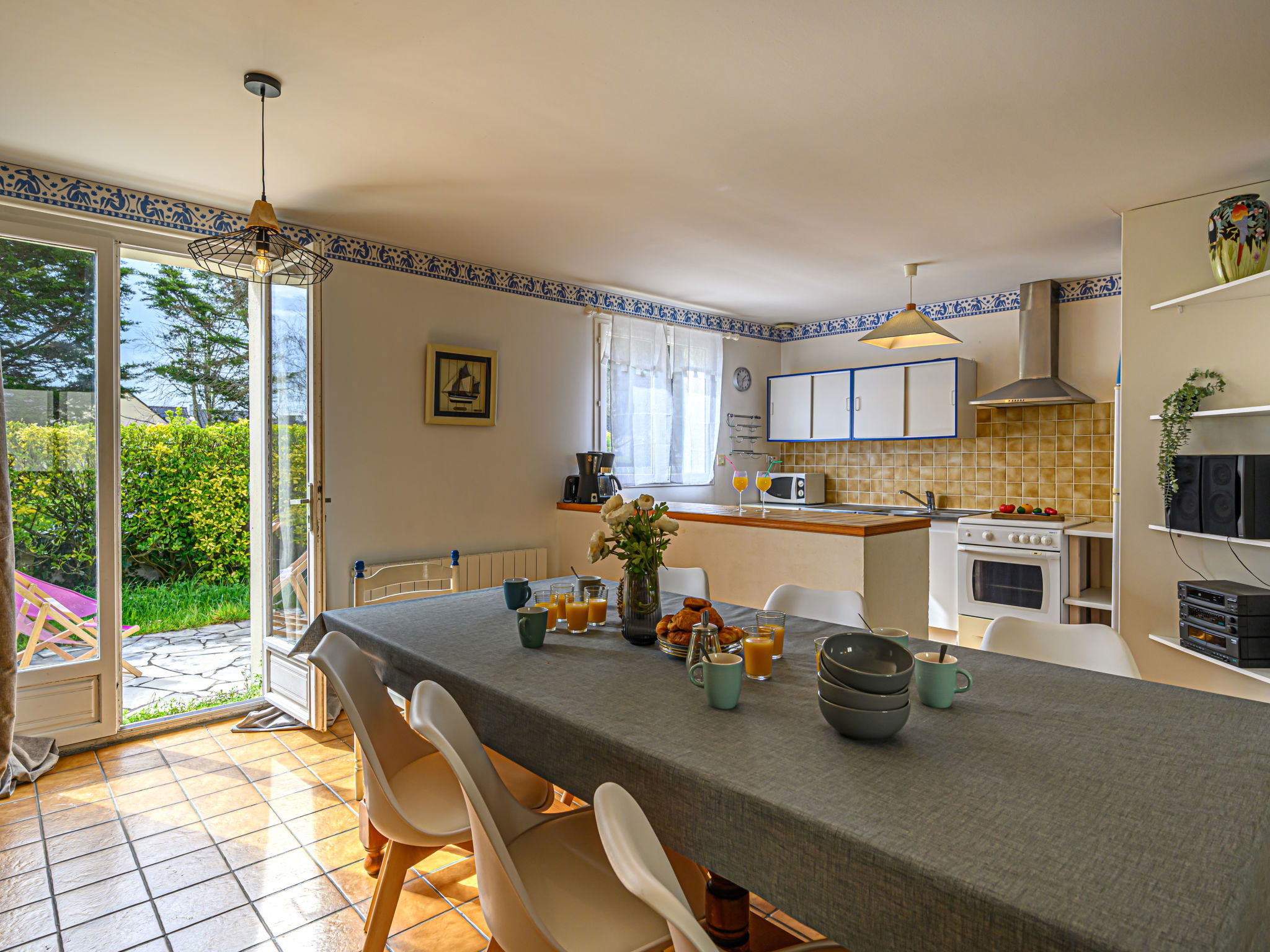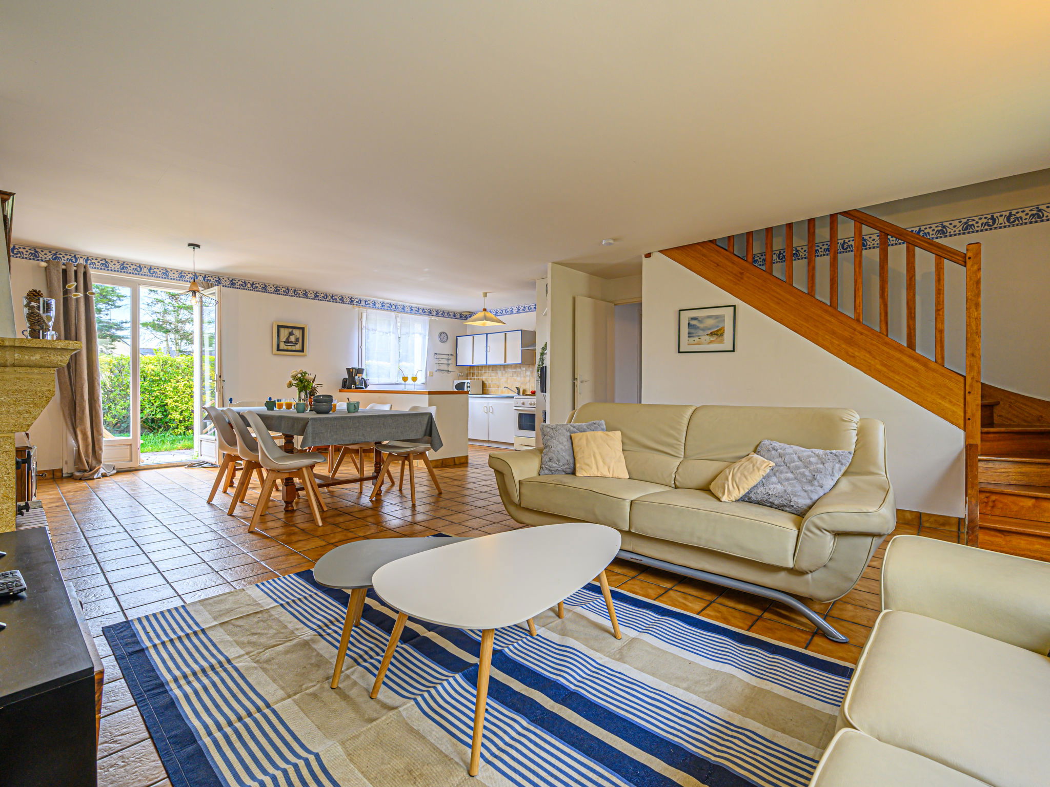Single-family house "Le Large". On the outskirts, 800 m from the sea, 800 m from the beach. Private: garden 300 m2 (fenced), parking. Supermarket 2 km, restaurant 2 km, bar 2 km, bakery 2 km, sandy beach "Men Er Bellec" 800 m. Sports harbour 5 km, golf course (18 hole) 15 km, surf school 7 km, sailing school 2 km. Nearby attractions: La Trinité sur Mer 5 km, Les Alignements de Carnac 12 km, Presqu'île de Quiberon 20 km, Vannes 25 km, Lorient 50 km. Hiking paths: Golf du Morbihan 20 km.